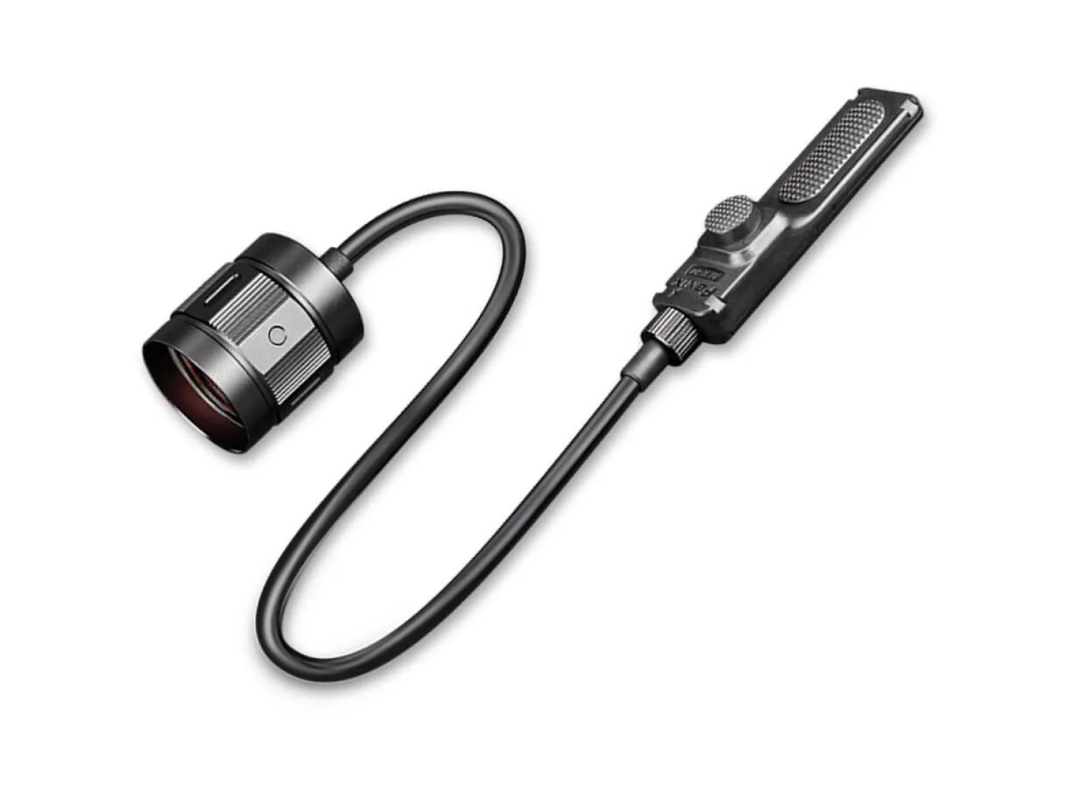 Der Fenix AER-04 Remote-Switch wurde speziell für taktische Taschenlampen mit 21700er Batterie entwickelt. Der Rückdeckel besteht aus hochfestem A6061-T6 Aluminium und ist mit einem harteloxierten und abriebfesten Finish versehen. Das doppelte Schalterfeld umfasst einen Rundknopf für das An- und Ausschalten der Lampe sowie einen Langknopf für ein bedarfsgerechtes Aufleuchten, solange der Knopf gedrückt bleibt. Das innovative, geräuschlose Design mit integriertem Klettverschluss macht die Fernbedienung sehr zuverlässig und praktisch für taktische Einsätze oder die Jagd. Der Kabelschalter ist unter anderem geeignet für die Modelle Kabelschalter TK22 V2.0, TK22 UE und HT18.