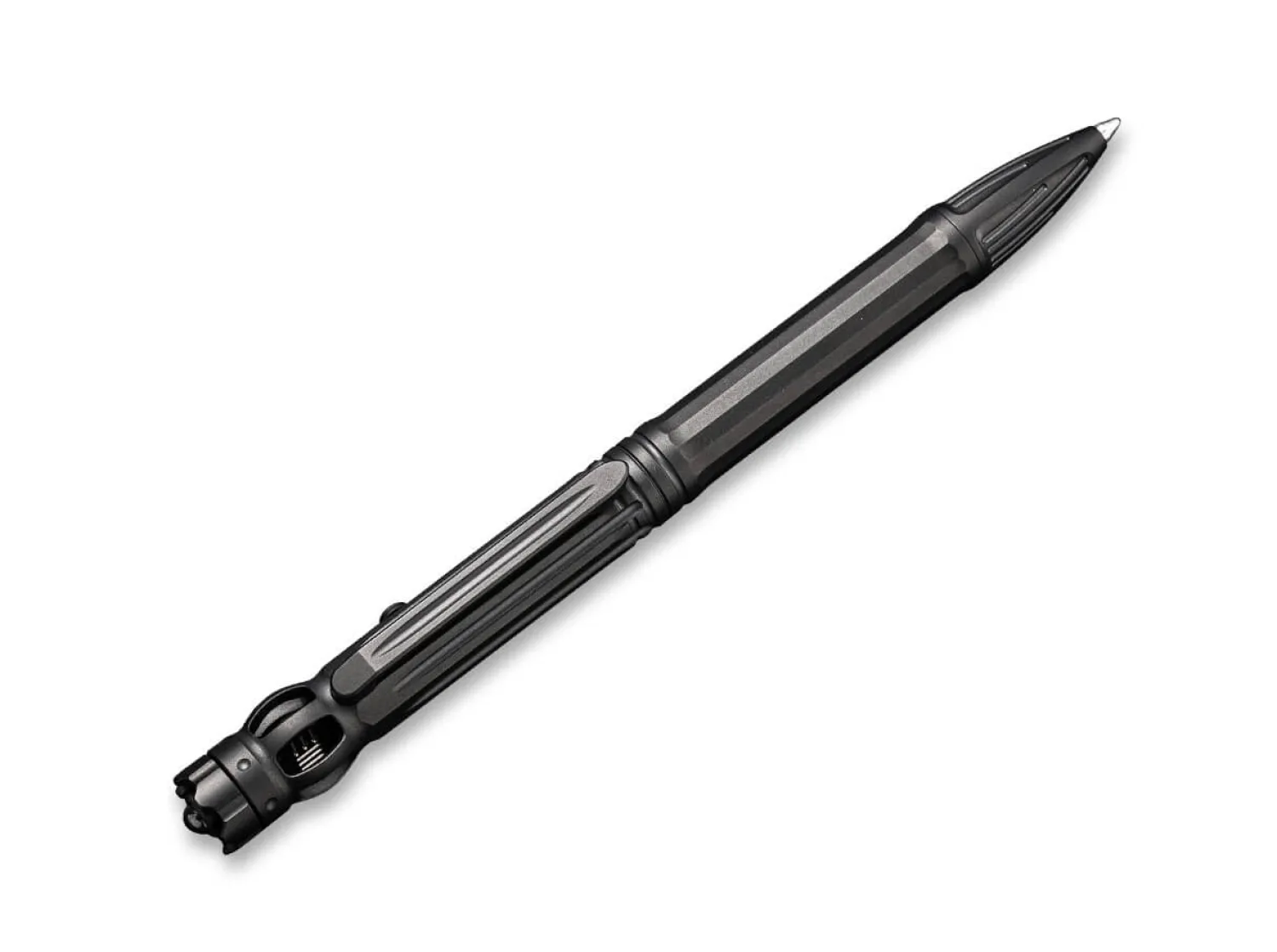In Anlehnung an den mittelalterlichen Baculus, einem dem Zepter ähnlicher Streitkolben, präsentiert WE Knife den gleichnamigen Tactical Pen. Der aus schwarzem Titan gefertigte Stift ist aber hingegen genügsam gestimmt und beruhigt strapazierte Nerven mit dem integrierten Rotations-Spinner im oberen Bereich des Griffs. Den krönenden Abschluss bildet der Glasbrecher am Griffende. Verwendet werden Minen des Typs Schmidt EasyFLOW 9000M oder vergleichbar. Schreibfarbe der mitgelieferten Mine: Schwarz.