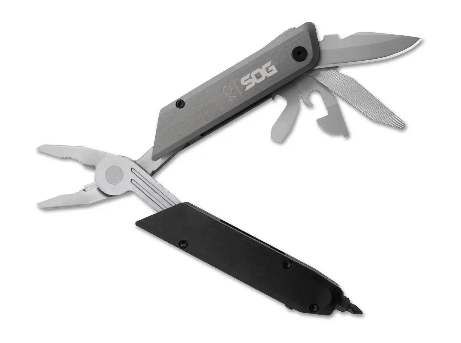 Die Batons sind eine neue Familie von Multifunktionswerkzeugen, die die gleiche Funktionalität wie klassisch konzipierte Multitools bieten, aber mit ihrer gänzlich neuen Ästhetik und dem modernen Design begeistern. Jedes Baton-Tool ist auf ein anderes Anwender-Szenario abgestimmt und ergänzt sich perfekt mit den übrigen Tools dieser Serie. Die innovative schlanke Form, nicht viel länger als ein Stift, und nicht dicker als ein Textmarker, macht es einzigartig. Sie passen bequem in die Hosentasche oder in das Stiftfach eines Organizers oder Rucksacks. Die schlanken und minimalistischen Batons sind aus Aluminium gefertigt und bieten eine Reihe von verschiedenen Werkzeugen. Das Q4 ist die Erweiterung des Q3. Es ist individuell erweiterbar und anpassbar an Ihre persönlichen Bedürfnisse. Von der Bestückung her ist es an die klassischen Multitools angelehnt und beherbergt die folgenden Werkzeuge: Kombizange, Drahtschneider, glatte Klinge, dreiseitige Feile, Dosenöffner, kleiner und mittlerer Schlitzschraubendreher, Kapselheber und magnetische Werkzeugratsche samt 12-teiligem Sechskant-Bit-Set (1/4“). Auch hier besteht der Griff aus 6061-T6 Aluminium, und die Werkzeuge sind aus 5Cr15MoV gefertigt. Lieferung mit Etui.