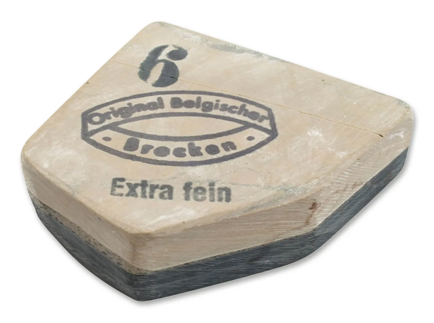 Belgische Brocken werden zum Nachschärfen von Messern verwendet. Es handelt sich hierbei um Natursteine, die in den Belgischen Ardennen abgebaut werden. Ihre einzigartige Zusammensetzung ermöglicht ein feines und materialschonendes Schleifen.Die helle Schicht wird zum Schleifen verwendet, die Schieferlage an der Unterseite dient lediglich zu Verstärkung des Schleifsteins.Zum Schleifen wird der Belgische Brocken angefeuchtet. Die Klinge wird in einem spitzen Winkel auf den Stein gelegt und mit kreisenden Bewegungen abgezogen. Dabei bildtet sich eine natürliche Schleifpaste, welche die Klinge fein schleift und gleichzeitig poliert.
