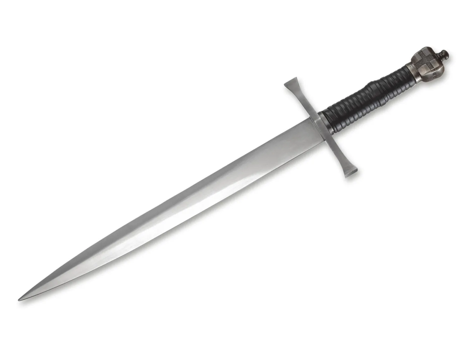 Im Mittelalter waren Schriftstücke überaus selten und kostbar, Briefe und Bücher waren dem Adel und dem Klerus vorbehalten. Heute erhält der gedruckte oder sogar handgeschriebene Brief durch den hauptsächlichen Gebrauch von E-Mails und Kurznachrichten wieder eine neue Feierlichkeit. Den Moment des Öffnens sollte man mit dieser gebrauchstüchtigen und nicht zu kleinen Miniatur eines mittelalterlichen Zweihänders zelebrieren. Die symmetrische Klinge aus rostfreiem 420er Edelstahl ist nicht geschliffen. Der Brieföffner wird mit einer Steckscheide aus schwarzem Kunststoff mit Ort- und Mundblech aus Metall geliefert.