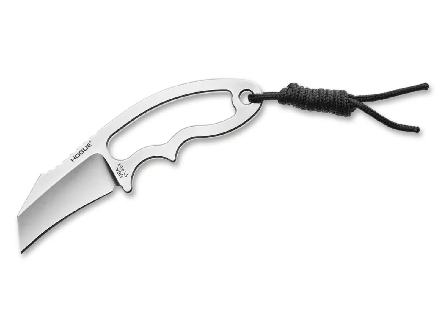 Das Hogue EX-F03 ist mit einer Hawkbill-Klinge aus 154CM ausgestattet und dank des skelettierten Griffs besonders leicht. Es wird mit einer praktischen Kydex-Scheide ausgeliefert und bequem um den Hals getragen werden, was das handliche Messer zu einem außergewöhnlichen Neck Knife macht.