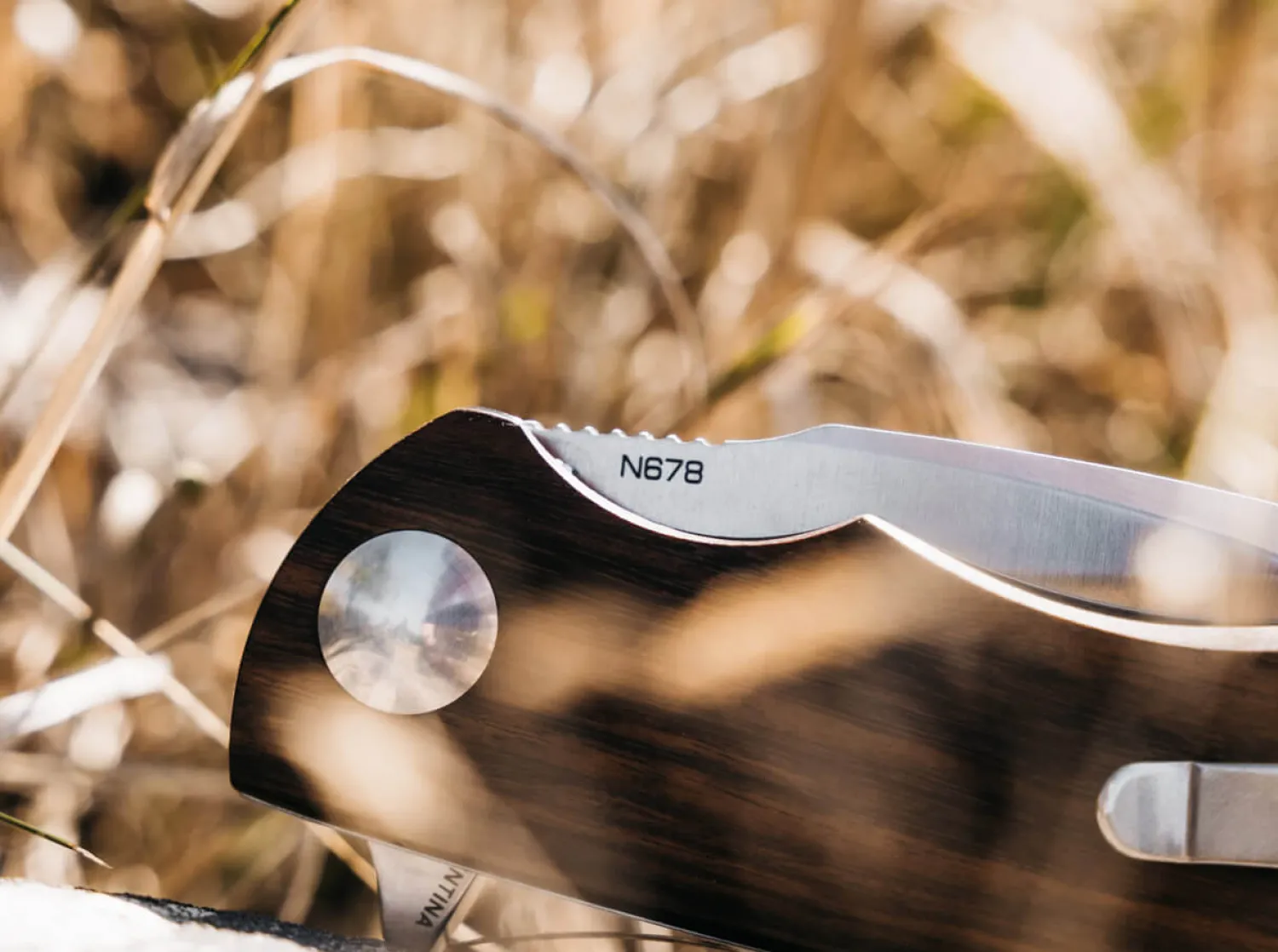 Nahuel bedeutet Jaguar in der Sprache der Mapuche, der indigenen Bevölkerung von Argentinien und Chile. Ebenso kraftvoll und elegant wie der Jaguar ist der neue Klappmesserentwurf von Böker Arbolito. Herausstechendes Merkmal dieses Folders mit Liner Lock ist die beidseitige großflächige Verarbeitung von hellem Guyacan-Ebenholz. Das breite Messer erhält hierdurch zugleich eine angenehme warme Haptik und Optik. Ein weiteres ansprechendes Detail ist der Spacer, der ebenfalls aus Guyacan gefertigt ist. Die Droppoint-Klinge aus rostfreiem Edelstahl Böhler N678 ist bequem über einen Flipper zu öffnen, der ausgeklappt einen zuverlässigen Fingerschutz bietet. Einen reizvollen optischen Akzent setzt die groß dimensionierte Achsschraube. Ein in das Holz eingelassener Deep-Carry-Clip ermöglicht die Trageweise Tip-Up / rechts.