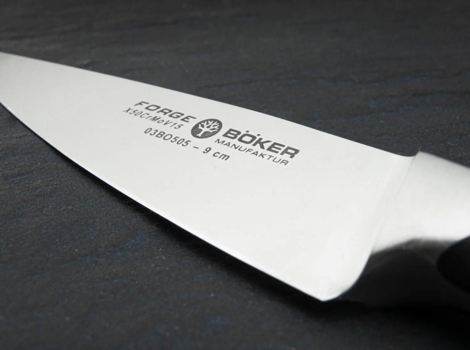 Die Kochmesser-Serie Böker Forge verbindet innovative und dynamische Formgebung mit klassischer Materialauswahl in Premiumqualität. Auffallend ist die attraktive Linienführung, die die Messer deutlich von der Masse der herkömmlichen Küchenmesser abhebt, ohne zu exzentrisch zu wirken. Darüber hinaus überzeugt die Serie Böker Forge mit einem ausgesprochen attraktiven Preis-Leistungs-Verhältnis. Die aus dem Chrom-Molybdän-Vanadium Edelstahl X50CrMoV15 gefertigten Messer sind optimal ausbalanciert und liegen durch die ergonomische Griffgestaltung perfekt in der Hand. Schwarze Griffschalen aus hochwertigem Spezialkunststoff werden klassisch mit drei Edelstahlnieten dauerhaft und ohne Fugen mit dem vollständig durchgehendem Messererl verbunden. Die Gestaltung der Klingen samt Übergang zum Kropf erlaubt ein problemloses Nachschärfen und gewährleistet in Kombination mit der richtigen Pflege eine langfristig perfekte Funktion der Messer. Bitte reinigen Sie die Messer nur per Handwäsche und nicht in der Spülmaschine. Darüber hinaus überzeugt die Serie Böker Forge mit einem ausgesprochen attraktiven Preis-Leistungs-Verhältnis. Die Auslieferung der Messer erfolgt in einer hochwertigen Geschenkverpackung.Das Schälmesser ist besonders handlich und verfügt über eine kurze Klinge. Alle kleineren Arbeiten in der Küche werden mit diesem Messer durchgeführt. Zu den Hauptaufgaben gehört, wie der Name schon sagt, das Schälen von Obst und Gemüse. Es ist perfekt geeignet, um dicht an der Schale entlangzuschneiden.