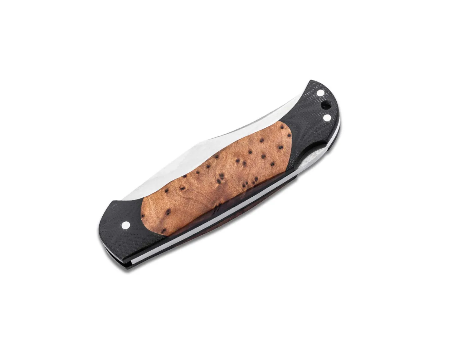 Im Aufbau gleicht unser Junior seinen Geschwistern und besitzt einen federleichten Griffkörper aus G10.Die Clippoint-Klinge wird aus eisgehärtetem N690 mit 60 bis 61 HRC gefertigt und von einem stabilen Backlockarretiert. So bietet sich das Junior Scout als handliches Alltagsmesser an, das Eleganz und Nutzwert beinah unnachahmlich verbindet. Mit Fangriemenöse und Beschalung aus erlesenem Thujaholz. Die Auslieferung erfolgt in einem hochwertigen Filz-Etui zur Aufbewahrung. Handgefertigt in der Böker Manufaktur in Solingen.