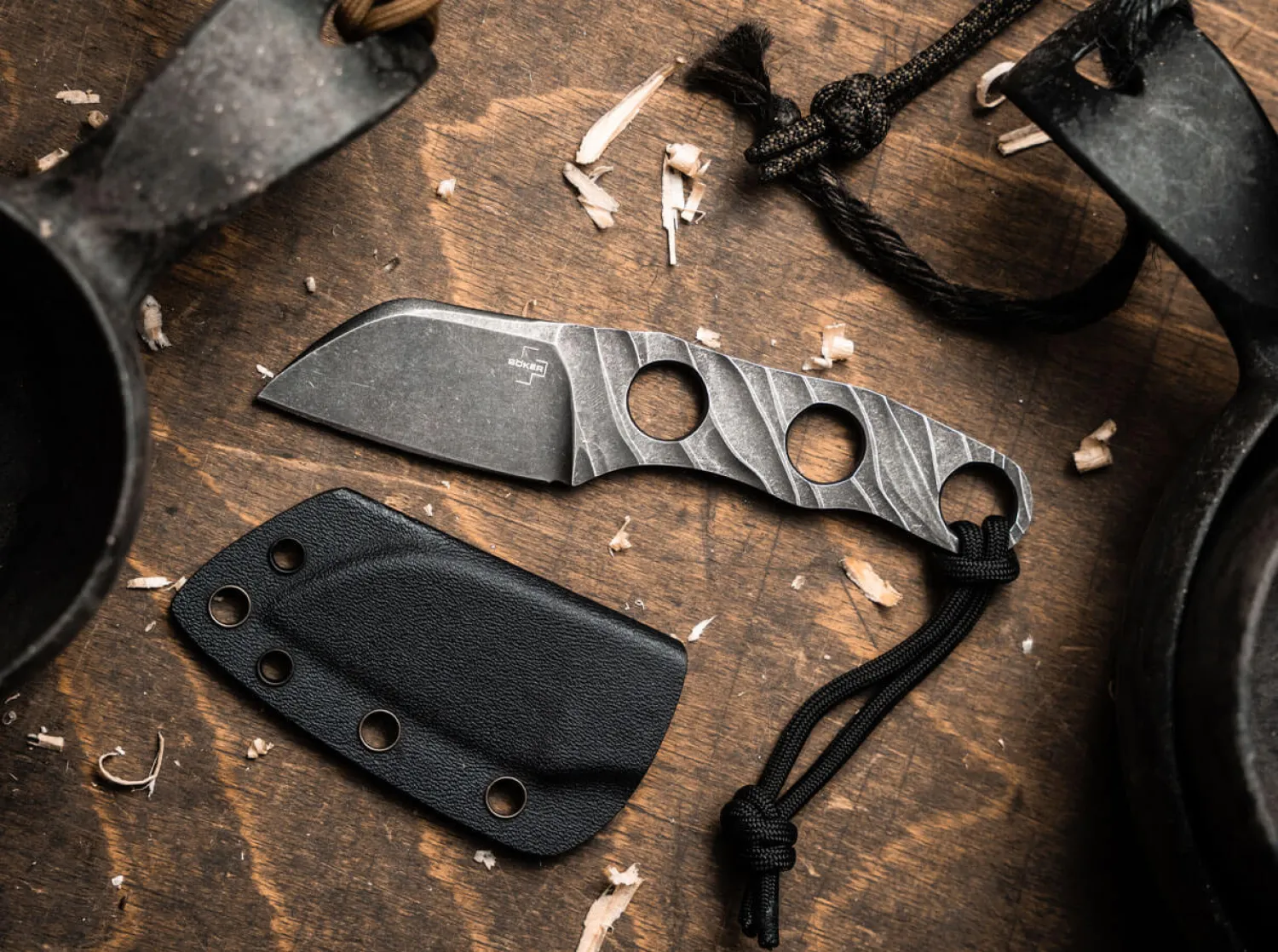 Das von Alexander Krava entworfene Böker Plus Kazhan ist ein handliches Neck Knife mit kurzer Sheepfoot-Klinge, das sich aufgrund seines geringen Gewichts als ideales Backup-Messer für den Alltag anbietet. Der junge Messermacher aus dem ukrainischen Lwiw legt besonderen Wert auf die Ästhetik seiner Entwürfe, die nicht nur als zuverlässige Werkzeuge, sondern auch als hochwertige Accessoires überzeugen. Das in Skelettbauweise gefertigte Kazhan besteht aus D2 und ist mit einem dunklen Stonewash-Finish versehen. Gewichtsreduzierende Aussparungen und dreidimensionale Fräsungen verleihen dem Messer eine ganz besondere Anmutung. Mit Lanyard, Kugelkette und passgenauer Kydex-Scheide.Leider kam es bei diesem Artikel im aktuellen Katalog zu einem Druckfehler, gültig ist der hier angezeigte Lieferumfang. Wir bitten den Druckfehler im Katalog zu entschuldigen und danken für Ihr Verständnis.