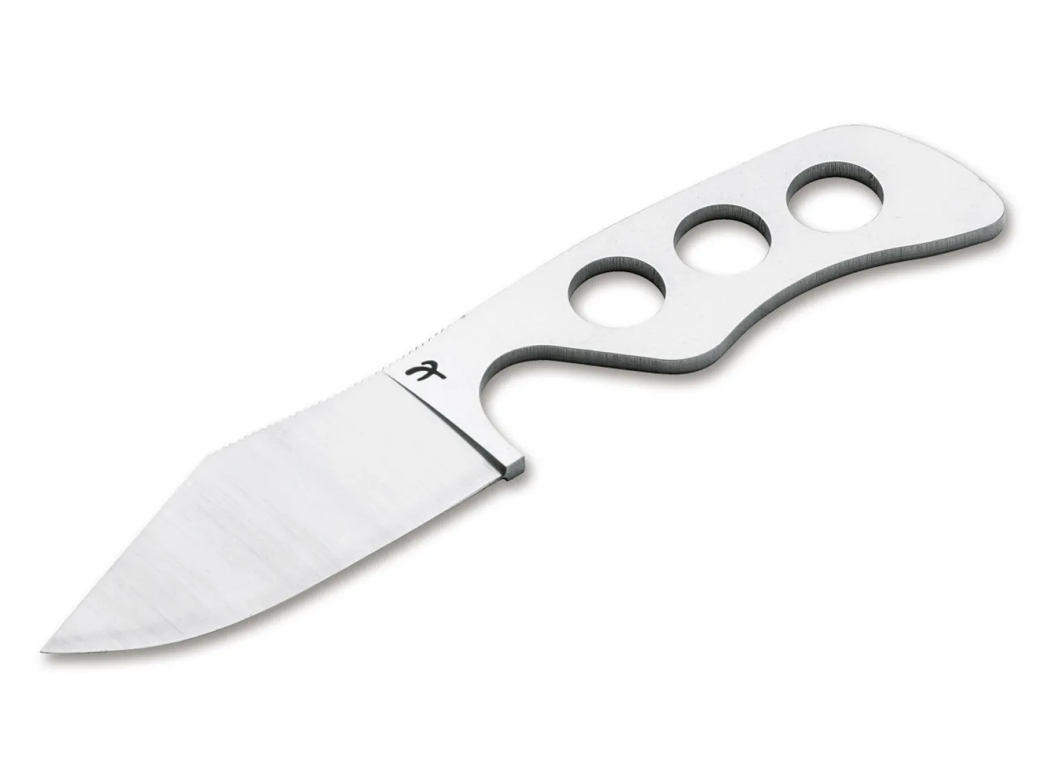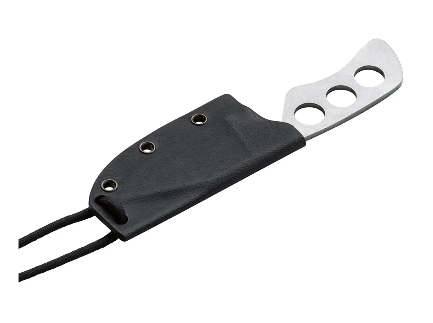 Das handliche, skelettierte Neck Knife aus 440C Stahl ist ein Klassiker von Fred Perrin. Die charakteristischen Linien, die gelungene Ergonomie und der ausgezeichnete Tragekomfort, bedingt durch die Leichtbauweise, haben es zu einem der beliebtesten Entwürfe von Fred Perrin gemacht. Der ideale Begleiter in sämtlichen Lebenslagen, flach, leicht und kompakt. Auslieferung mit Kydexscheide und Trageschnur.