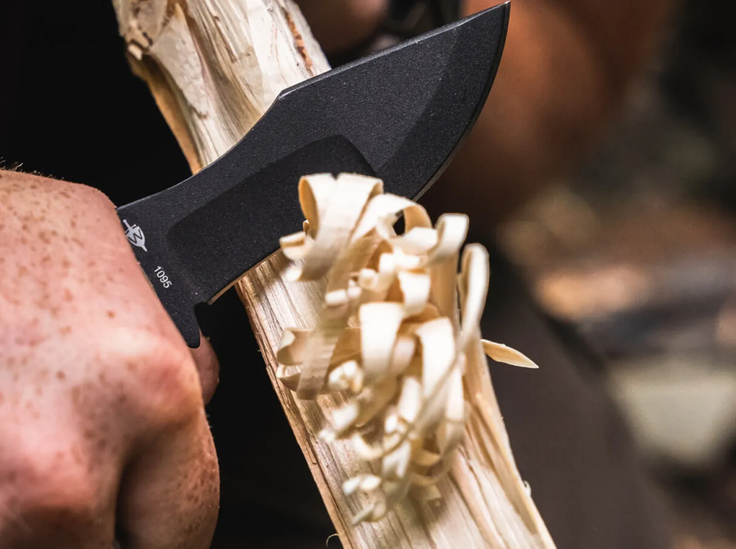 Das charakteristische Design, das Tracker-Konzept mit den zwei voneinander abgesetzten Schliffen, der schocklastunempfindliche Kohlenstoffstahl 1095 und das bemerkenswerte Preis-Leistungs-Verhältnis machten den Böker Plus Mini Tracker von Dave Wenger schnell zu einem Topseller in der Bushcraft- und Outdoor-Szene. Während bei den größeren Varianten des Trackers der vordere Klingenteil vor Allem zum Hacken und Spalten geeignet ist, zeigt die Klingenform mit der kleineren Dimension des neuen Böker Plus Micro Tracker ganz andere Vorzüge und Qualitäten. Die Vorteile der beiden Schliffwinkel auf einer Klinge teilt der Micro Tracker mit seinen großen Brüdern. Darüber hinaus lässt sich im kleineren Format mit der vorderen Klingenhälfte hervorragend auf einem Schneidbrett arbeiten und mit der kräftigen Spitze lassen sich im Alltag ausgezeichnet Kartons öffnen. Die Kleine Nase, die die beiden Schliffe voneinander abgrenzt, zieht sich mit Kraft in den Schnitt in weichen Materialien und ist prädestiniert zum Kappen von Schnüren, Leinen und Gurten. Der Feld- und 3D-Bogenschütze schätzt die kompakten Maße, die kräftige Spitze und die archaische Erscheinung beim Herausarbeiten fehlgeschossener Pfeile. Das Böker Plus Micro Tracker hat dieselben unverwüstlichen Materialien und dasselbe Finish des Mini Tracker. Ein optisches Highlight setzen die drei sorgfältig versenkt und mit Fase versehenen Messinghohlnieten im Griff.