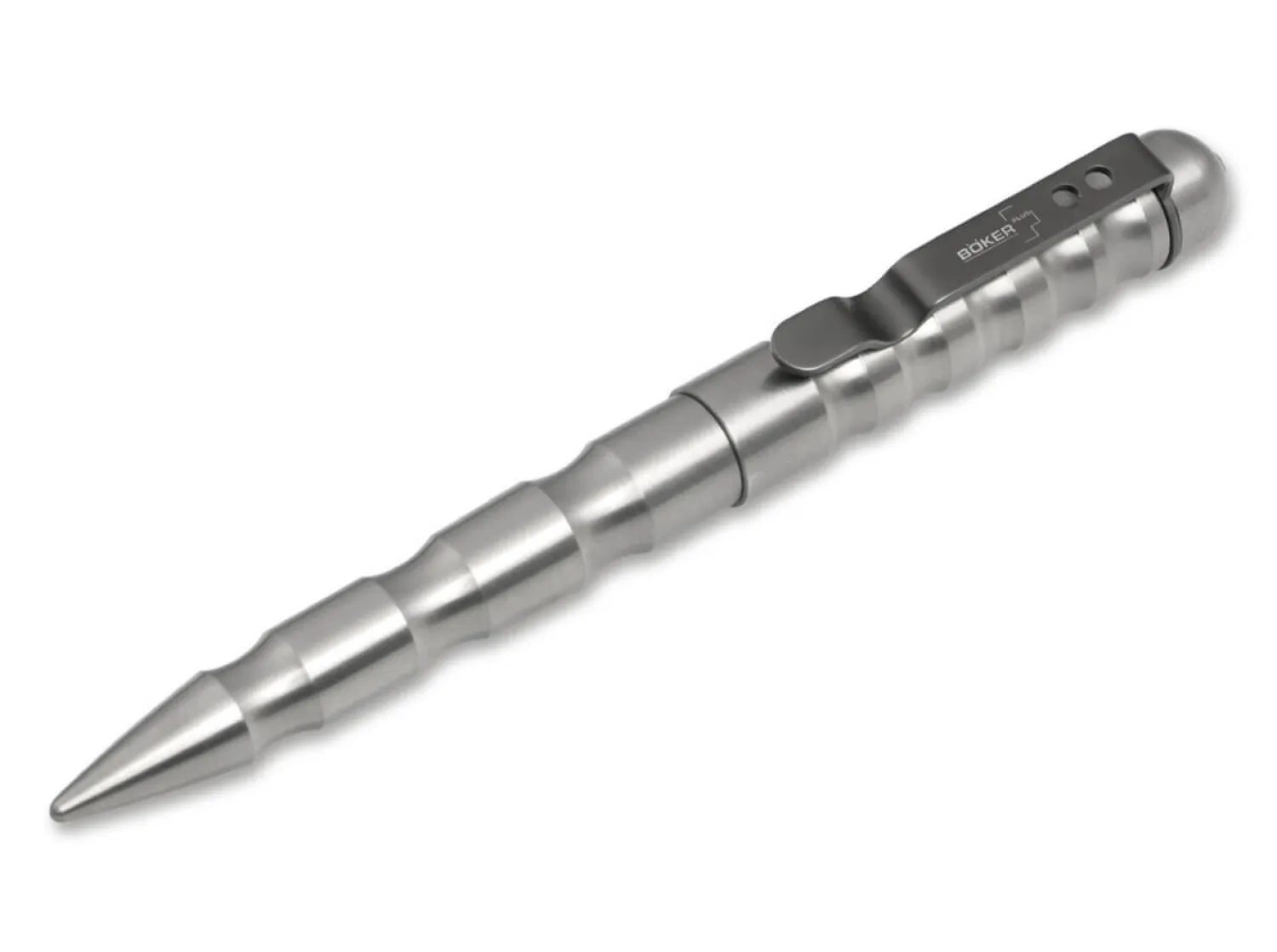Mit dem vielseitig einsetzbaren Böker Plus MPP ist man für sämtliche Lebenslagen gerüstet. Der Stift dient primär natürlich als hochwertiges Schreibgerät, kann im Extremfall aber auch Leben retten. So kann der Glasbrecher in Notfallsituationen helfen, verunfallte Personen aus Autos zu befreien oder der stabile Körper für Kubotan-Techniken eingesetzt werden. Der mit breiten Rillen versehene Griffkörper wird aus hochfestem und antiallergischen Titan gefertigt und liegt sehr angenehm in der Hand. Durch den stabilen Clip bleibt der MPP stets griffbereit. Er ist kompatibel zu Fisher Space-Pen Minen #Pr4, zum Minenwechsel wird er per Linksgewinde auseinander geschraubt. Das verhindert ein unbeabsichtigtes Demontieren des Stiftes beim Abschrauben der Kappe. Der Durchmesser an der Kappe beträgt 13,9 Millimeter.