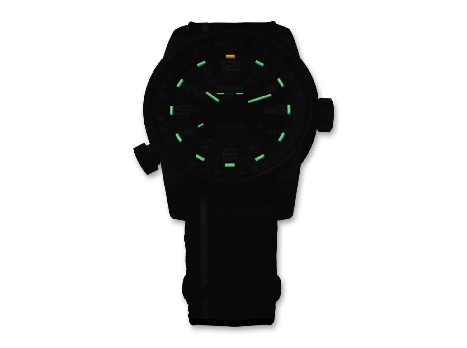 Ob im Großstadt-Dschungel, in kargen Wüstengebieten oder unterwegs auf den Weltmeeren: Die Traser P68 Pathfinder Automatic zeigt nicht nur die Zeit an, sondern auch den Weg auf. Der integrierte Kompassring macht aus dieser Uhr einen echten Pfadfinder, der seinen Träger die geographische Richtung bestimmen und dem eigenen Abenteuergeist folgen lässt. Damit die P68 für Abenteurer und Entdecker ein zuverlässiger Begleiter bleibt, garantiert die trigalight Selbstleuchttechnologie die einwandfreie Ablesbarkeit der Zeit, überall und jederzeit.Die P68 hat einen Durchmesser von 46 Millimetern und beherbergt ein Original Swiss Made Automatik Uhrwerk. Das Glas aus anti-reflektierendem Saphir besticht in Kombination mit dem Uhrengehäuse aus PVD-beschichtetem Edelstahl und verdeutlicht den hochwertigen Eindruck. Die weißen Ziffern und verschiedenfarbigen Uhrzeiger sitzen auf einem blauen Ziffernblatt. Die Himmelsrichtungen sind in Gelb gehalten und harmonisieren so mit dem mehrfarbigen NATO-Armband. Die trigalight Selbstleuchttechnologie erleuchtet Index 1 bis 11 in grüner Farbe und Index 12 in orangener Farbe.