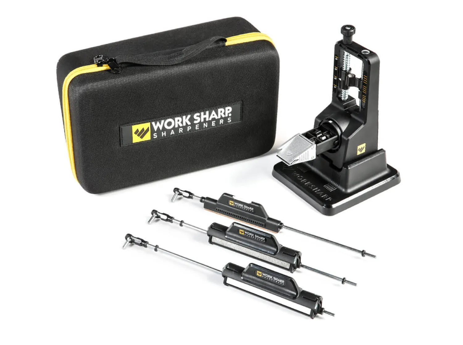 Das Work Sharp Precision Adjust Elite ist ein winkelverstellbares Messerschärfsystem, das für Präzision und perfekte Schärfergebnisse steht. Die Schärfwinkel können von 15° bis 30° in 1°-Schritten eingestellt werden. Die Tri-Brasive-Griffe enthalten Diamantplatten mit den Körnung en 220, 320, 400, 600 und 800 sowie eine Keramikplatte mit feiner Körnung zum Reparieren, Schärfen und Abziehen. Der Lederstreichriemen verfeinert und poliert die Klinge für ein optimales Ergebnis. Ein weiterer Keramikstab ist speziell zum Schärfen von Klingen mit Wellenschliff konzipiert. Das innovative Klemmdesign sichert das Messer schnell und zuverlässig. Lieferung mit praktischer Tragetasche.