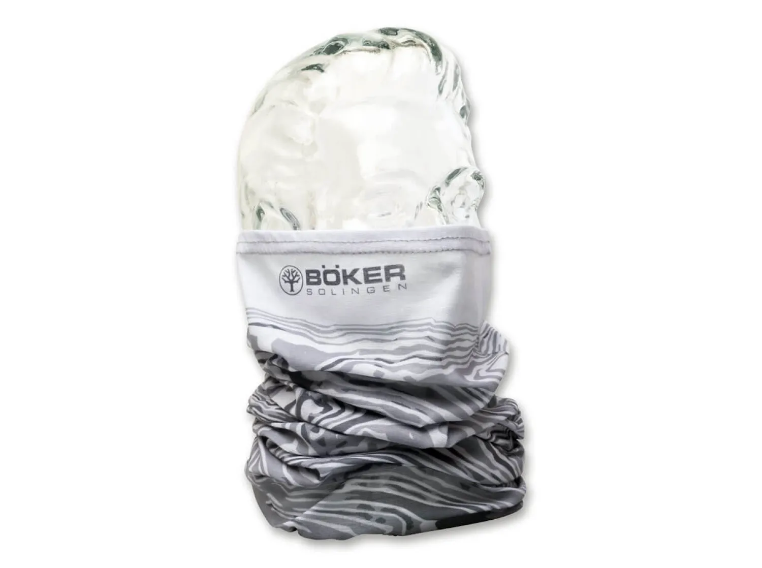 Der praktische Böker Plus Schlauchschal ist äußerst dehnbar und kann als Halstuch, Schal, Armband, Stirnband, Haarband, Sturmhaube oder Kopftuch verwendet werden. Der vielseitig tragbare Kälte- und Sonnenschutz aus Polyester ist mit einem abstraktem Damastmuster versehen und leistet als nützlicher Begleiter sowohl in der Wildnis, als auch beim Sport oder im Alltag treue Dienste. Maße: L. 45,5 cm x B. 25,5 cm.