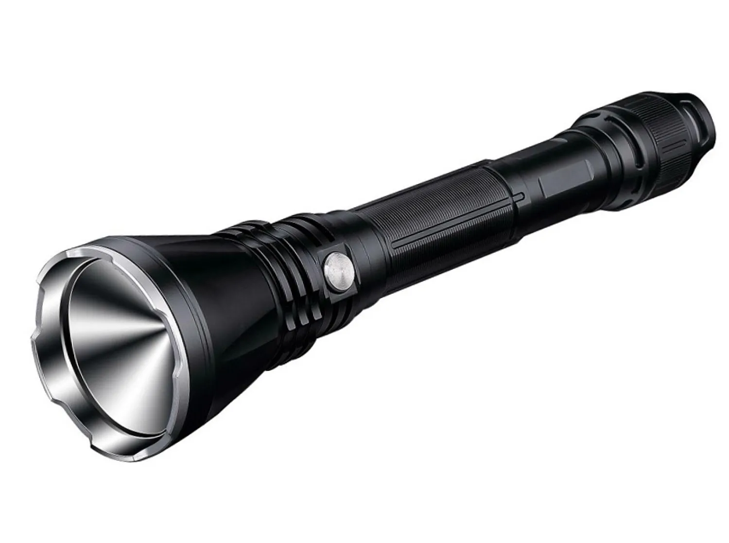 Die Fenix TK47UE ist ein multifunktionaler Suchscheinwerfer mit sehr hoher Reichweite. Der Scheinwerfer ist mit einer Cree XHP70 LED ausgestattet die bis zu 3.200 Lumen leisten kann und dabei eine Leuchtweite von maximal 400 Metern erreicht. An der Endkappe lässt sich zusätzlich homogenes weißes oder rotes Licht für den Nahbereich einschalten. Betrieben wird die Lampe mit zwei 18650 LiIon Akkus. Wasserdicht gemäß IP68.