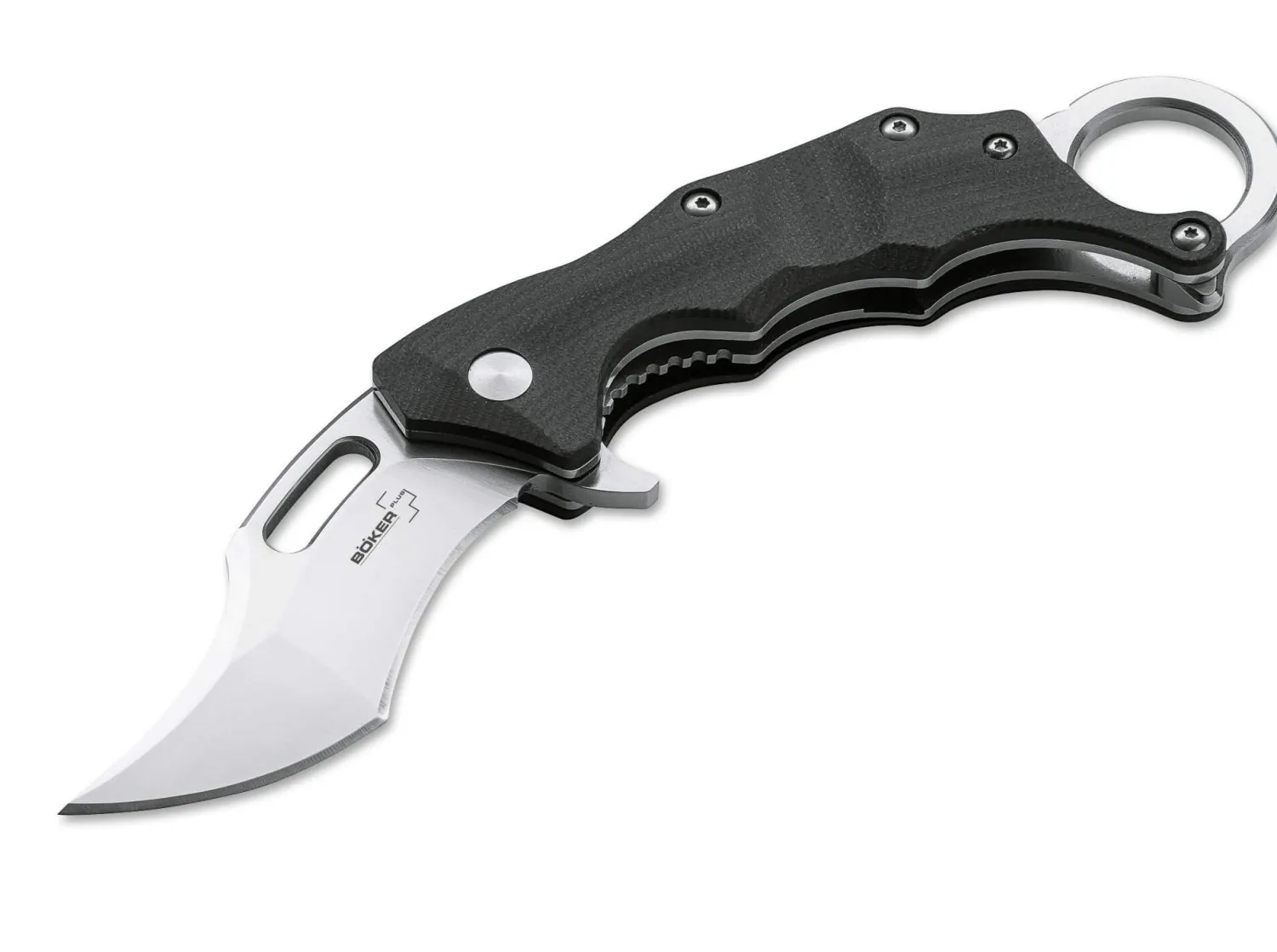 Die Entwürfe von Boris Manasherov zeugen von seinem vielseitigen Background. So ist er nicht nur Ingenieur und ausgebildeter Büchsenmacher, sondern auch Martial Arts-Spezialist, der sich seit 1973 intensiv mit dem israelischen Krav Maga beschäftigt. Seit 1985 als Ausbilder für israelische Spezialeinheiten tätig, vereinen seine Entwürfe seine Erfahrungen aus all diesen Bereichen, und seine Designs sind immer in höchstem Maße praxistauglich und den Erfordernissen moderner Einsatzmesser angepasst. Das exzellente Gespür von Boris Manasherov für die Ergonomie und das Handling eines Messers kommt auch beim Wildcat voll zum Tragen. Das Kerambit überzeugt mit perfekter Handlage und ist mit Edelstahlplatinen und einer Griffbeschalung aus G10 ausgestattet. Die kugelgelagerte Klinge aus D2 wird entweder weich per Daumenöffnung oder schnell und nachdrücklich per Flipper geöffnet. Ein zuverlässiger Linerlock übernimmt die Verriegelung. Der umsetzbare Clip (l/r) sorgt für einen tiefen Sitz in der Tasche, der den Ring jedoch oberhalb des Taschensaumes für ein schnelles Ziehen zugänglich lässt. Mit hochwertigem Nylon-Etui zur Aufbewahrung.