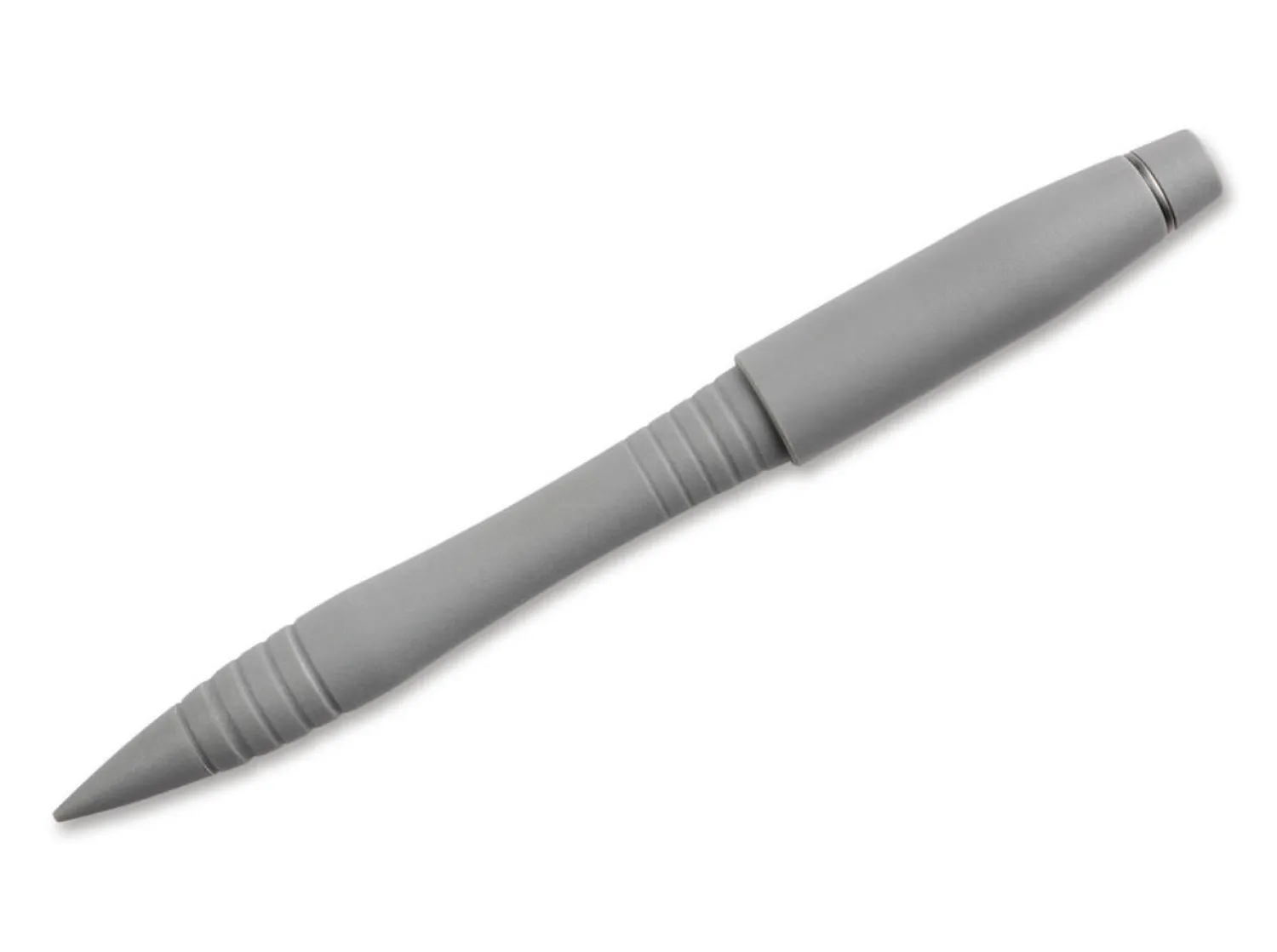 Im grauen Kugelschreiber aus Grivory steckt weitaus mehr als nur ein herkömmliches Schreibgerät. Form und Struktur sorgen für eine kompromisslose Griffigkeit, so dass der Stift im Notfall auch zur Selbstverteidigung eingesetzt werden kann. Verwendet werden Minen des Typs Schmidt MegaLine 4889M.