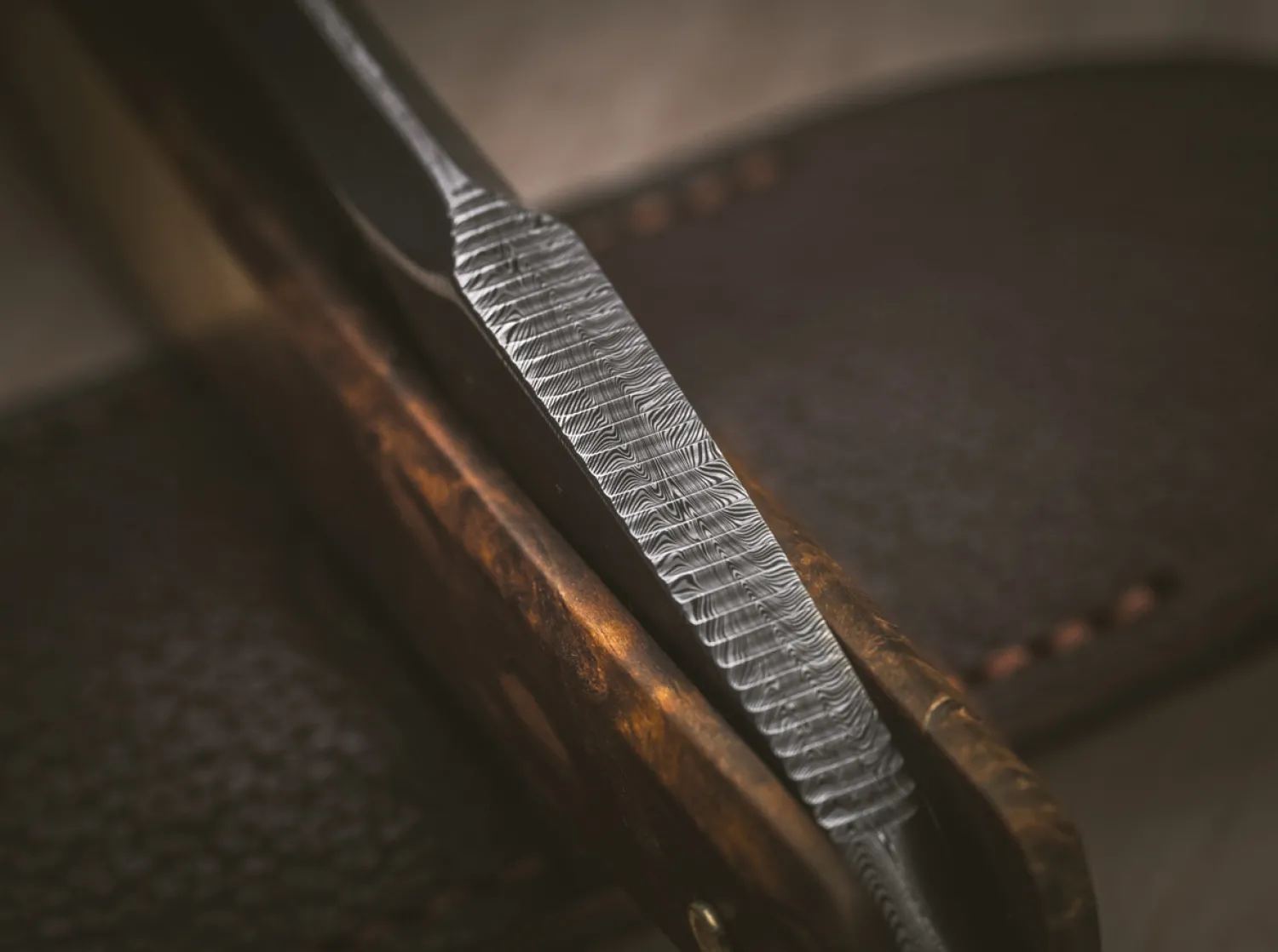 Die 6/8 Zoll breite Klinge des auf nur 75 Exemplare limitierten Damast-Jubiläumsmessers wird aus dem schwedischen Damasteel gefertigt und ist optisch ansprechend mit einer feinen Serrierung auf der Oberseite des Erls ausgestattet. Der charakteristische Spitzrücken und die geschwungene Form dieser auf Klang ausgeschliffenen Klinge harmonieren hervorragend mit dem eleganten Gradkopf. Das Heft wird aus gefärbter Maserbirke gefräst und anschließend in Handarbeit montiert. Anlässlich des Jubiläums wird zusätzlich ein Baumschild mit der Aufschrift „150 Jahre“ sorgfältig in das Heft eingelassen. Im Lieferumfang ist zusätzlich ein hochwertiges Stecketui aus Ziegenleder enthalten.