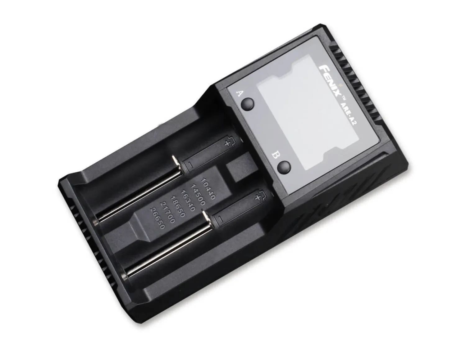 Das Fenix ARE-A2 ist ein intelligentes Dual-Ladegerät für sämtliche Arten von Li-Ionen- und Ni-MH/Ni-Cd-Akkus. Ladestatus und Batteriestand sind vom hochauflösenden LC-Display bequem ablesbar. Kompatibel mit den Akkus der Typen: 10440,14500,16340,18650, 21700 und 26650.