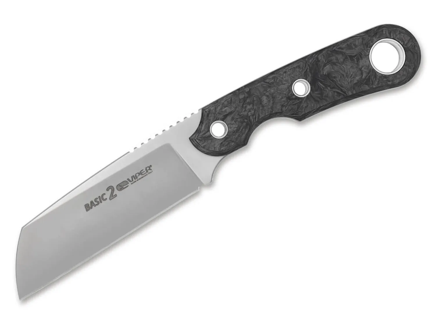 Reduziert auf das Wesentliche, gemacht für wesentlich mehr! Das Viper Basic 2 von Tommaso Rumici verleiht dem Alltag die nötige Portion Abenteuer als zuverlässiger Partner für Bushcrafting, Camping und die kleinen täglichen Aufgaben. Das feststehende Messer mit Sheepfoot-Klinge aus MagnaCut lässt beim Schneiden von Kartons bis hin zu kleinen Ästen die Leichtigkeit des Seins erkennen. Diese setzt sich in den schlanken Linien fort, die im ergonomischen Griff aus Marble Carbon und den drei großen Hohlnieten Ausdruck finden. Dank Vollerl und Jimpings garantiert das Messer Stabilität und eine sichere Handhabung. Lieferung mit Kydexscheide und passendem Tek-Lok Gürtelclip.