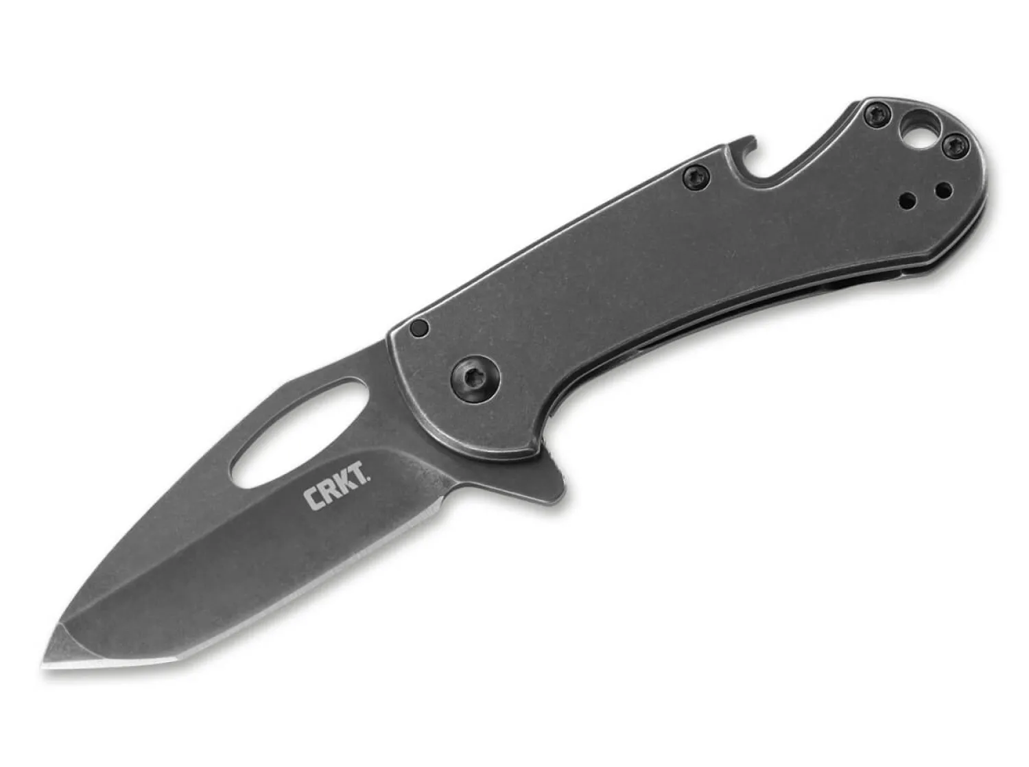 Für viele Fans sicher die Krone der Multifunktion: Der in den Griff integrierte Flaschenöffner des CRKT Bev-Edge stellt nicht nur ein schnelles Feierabendbier in Aussicht! Die per Flipper zu öffnende Klinge aus 8Cr13MoV mit Kugellager stellt auch im übrigen Alltag eine wertvolle Hilfe bei vielen Aufgaben dar. Der Edelstahl-Griff ist mit einem Framelock, einer Fangriemenöse und einem umsetzbaren Clip (Tip-up/l-r) ausgestattet. Entworfen wurde das mit einem Black Stonewash-Finish versehene Taschenmesser von Eric Ochs.
