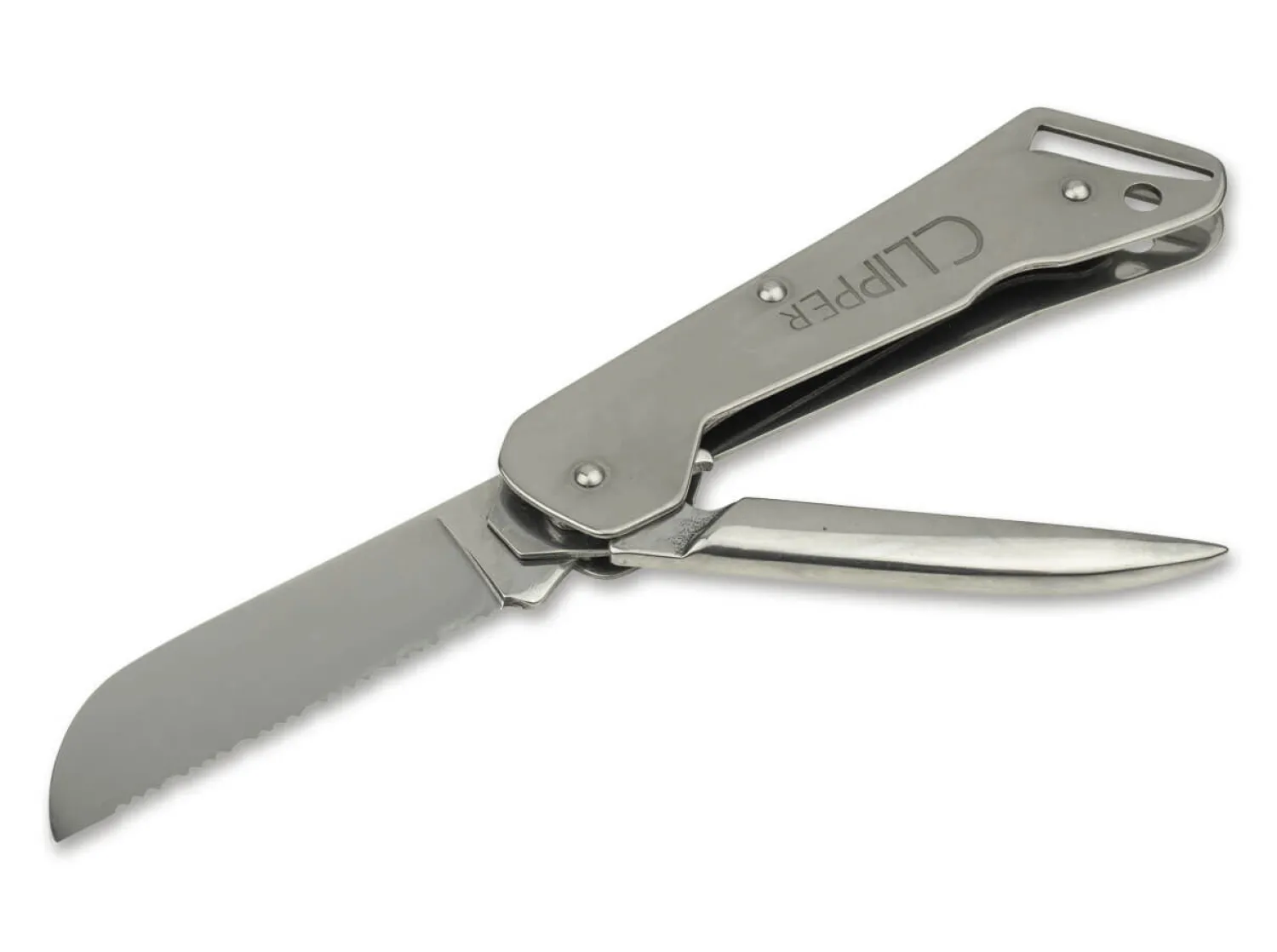 Das solide Boots- und Seglermesser von MAC in Ganzstahl-Ausführung ist mit einer Sheepfoot-Klinge mit bissigem Wellenschliff ausgestattet. Zusätzliche verfügt es über einen Marlspieker mit integriertem Flaschenöffner.