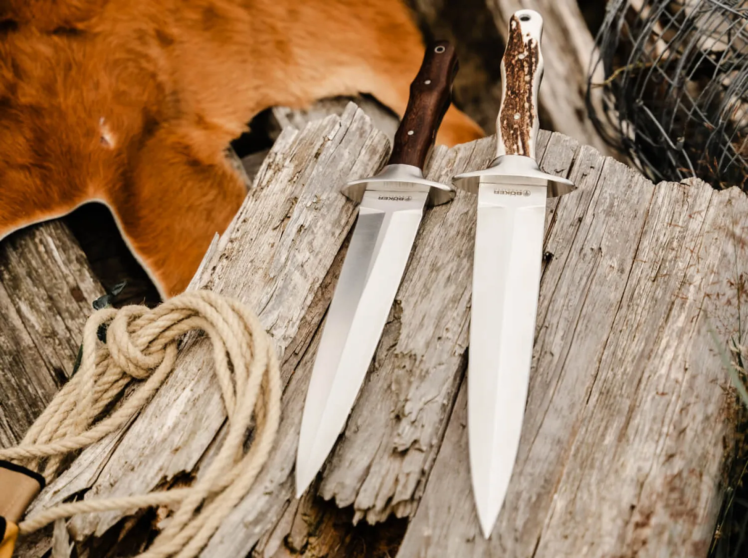 Das Böker Arbolito Colmillo ist als klassischer Hirschfänger mit einer langen Dolchklinge ausgestattet und beeindruckt mit seiner stabilen Vollerl-Bauweise sowie seiner beachtlichen Größe selbst erfahrene Jäger.. Die beidseitig abgezogene Klinge aus ACX 390 ist mit einem feinen Satin-Finish versehen, der ausladende Handschutz besteht aus Neusilber. Für die ergonomisch geformten Griffschalen kommt traditionelles Hirschhorn zum Einsatz, das mit den Neusilbernieten im Griff die waidmännische Anmutung des feststehenden Jagdmessers zusätzlich unterstreicht. Mit Fangriemenöse und hochwertiger Gürtelscheide aus braunem Leder.