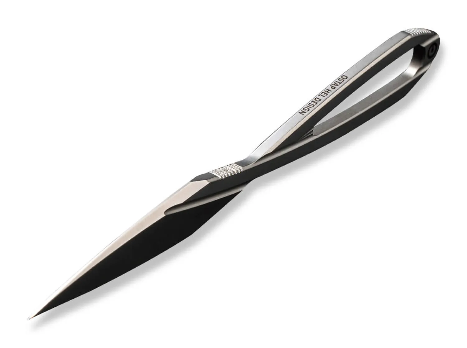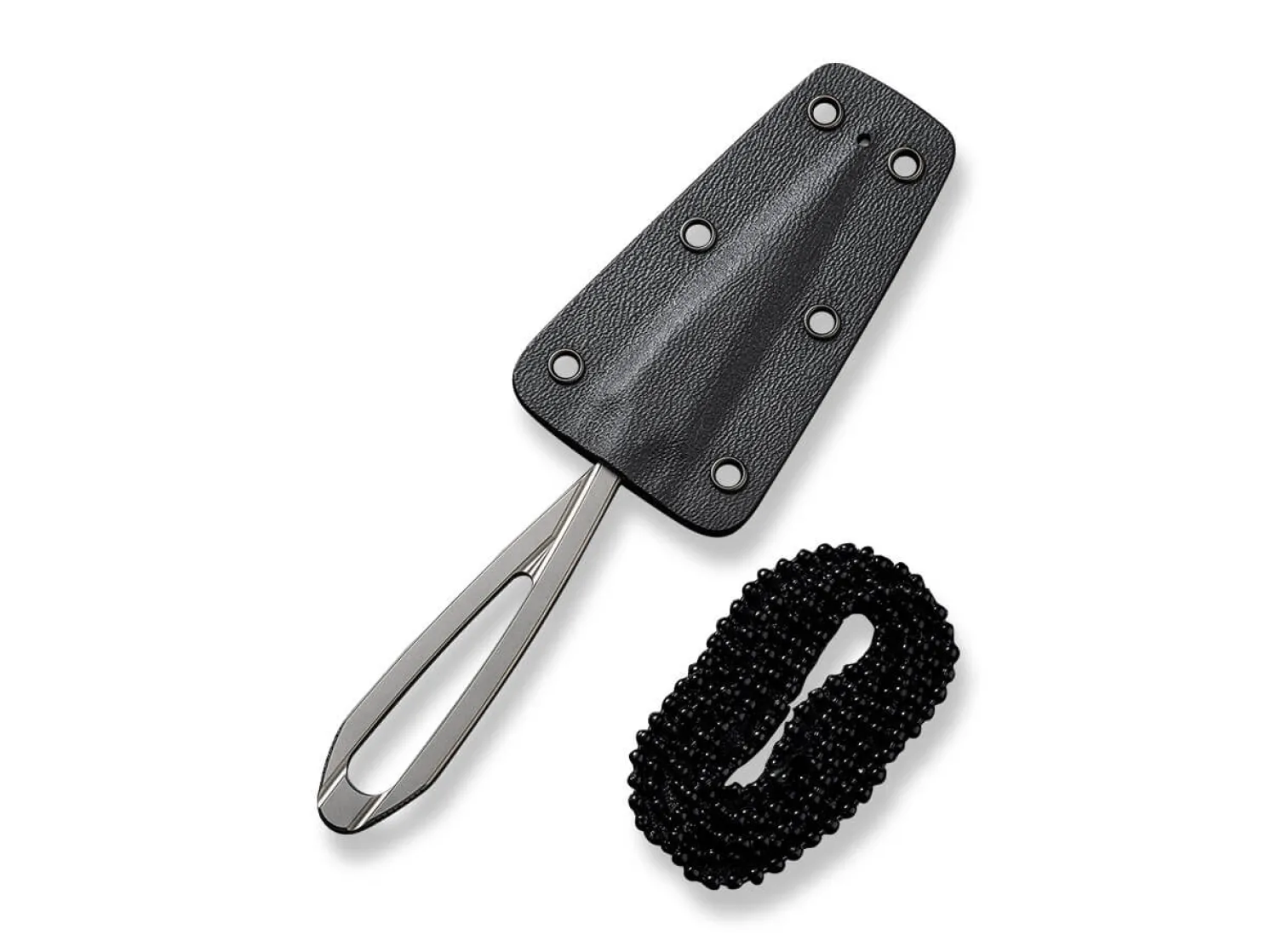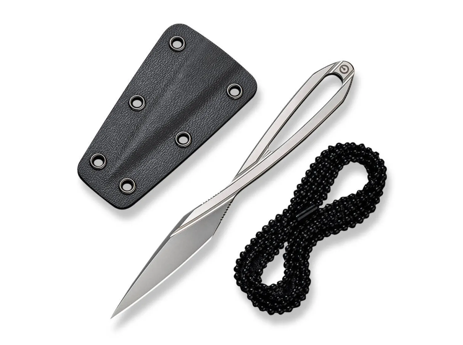 Das silberne Neck-Knife aus der Feder von Ostap Hel fällt besonders durch seine klare Formensprache auf. Kantige Elemente im Einklang mit geschwungenen Details prägen das feststehende Messer, das komplett aus D2 besteht und seine eigene Definition vom Goldenen Schnitt mitbringt. Lieferung mit Kydexscheide und Kugelkette.
