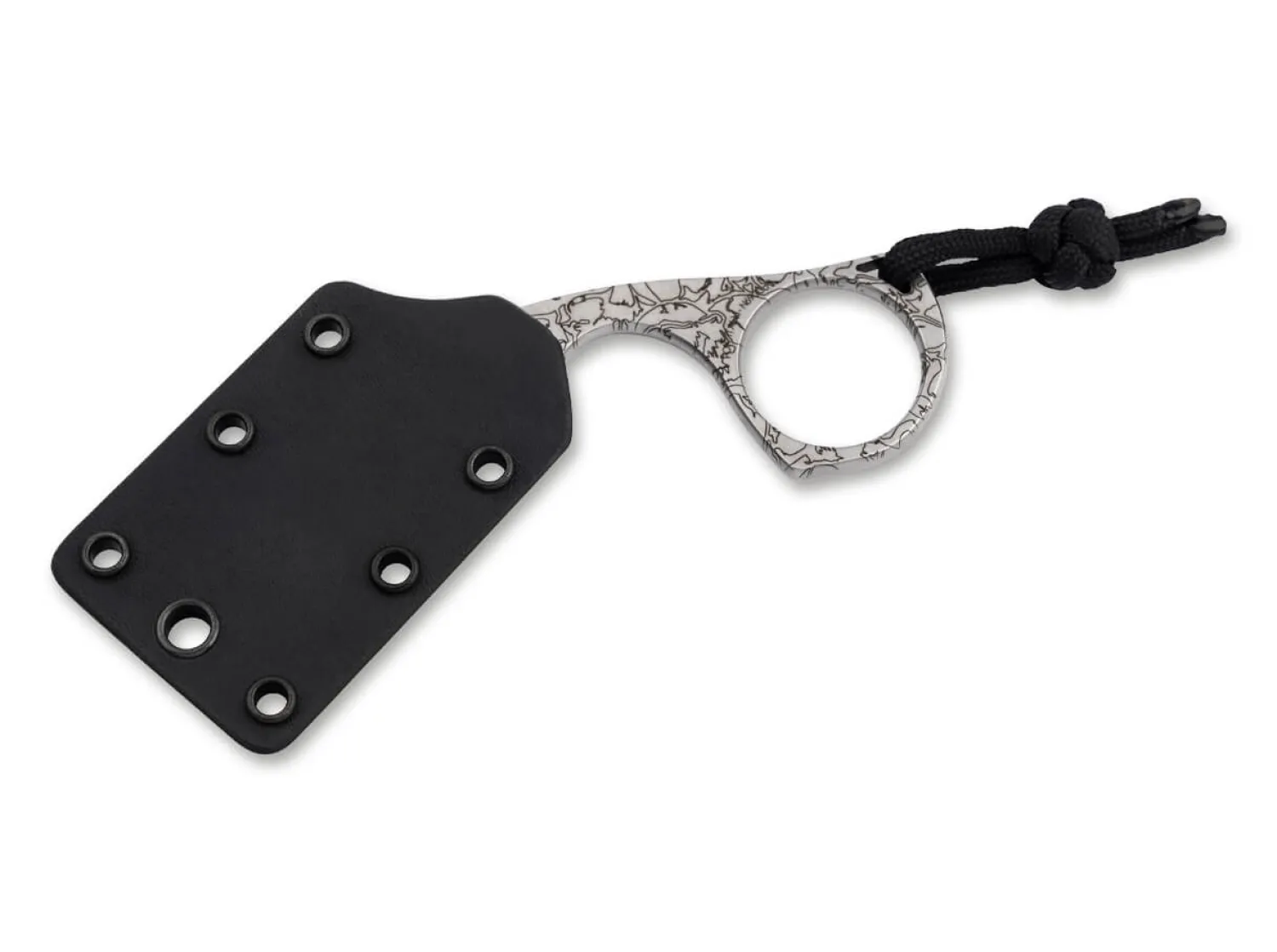 Das Diagnostic ist ein handliches Karambit Neck Knife mit Chisel Grind von Bastinelli. Die Edelstahlkonstruktion aus N690 ist mit einem geheimnisumwobenen Totenkopf-Design versehen. Das Daumenloch und die strukturierte Auflagefläche am Klingenrücken garantieren optimale Kontrolle beim Schneiden. Lieferung mit praktischer Kydexscheide sowie Lanyard.
