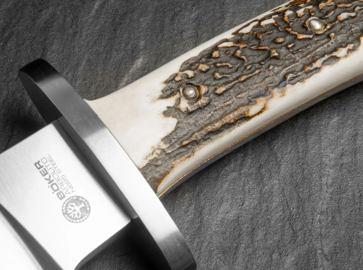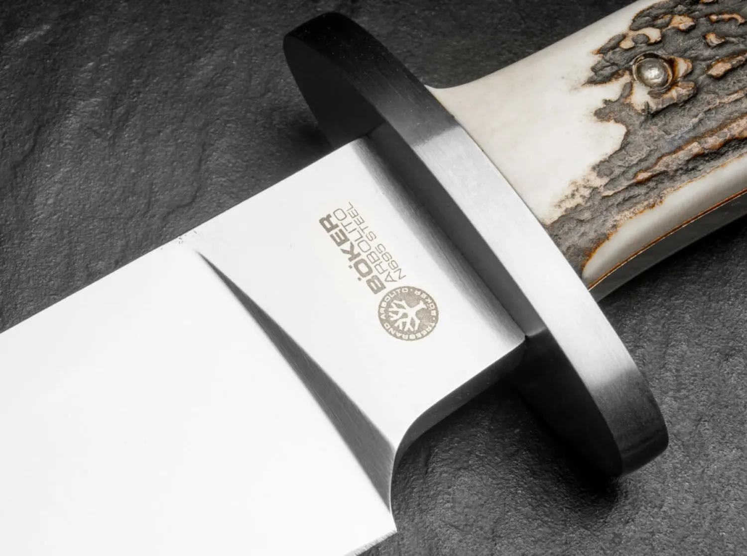 Eine Lücke im Sortiment schließen wir mit dem El Gigante mit Hirschhornbeschalung. Das überaus robuste Bowiemesser in Fulltang-Bauweise hat schon viele Outdoor-Enthusiasten und Jäger begeistert. Mit der Beschalung aus ausgesuchtem Hirschhorn ist es nun perfekt ausgestattet für den jagdlichen Einsatz und überzeugt als Standhauer ebenso wie als effektives Abfangmesser für Schwarzwild oder den kapitaleren Hirsch. Die Klinge des Hirschfängers wird aus N695 gefertigt, das Parierelement besteht aus Edelstahl. Lieferung mit hochwertiger Lederscheide.