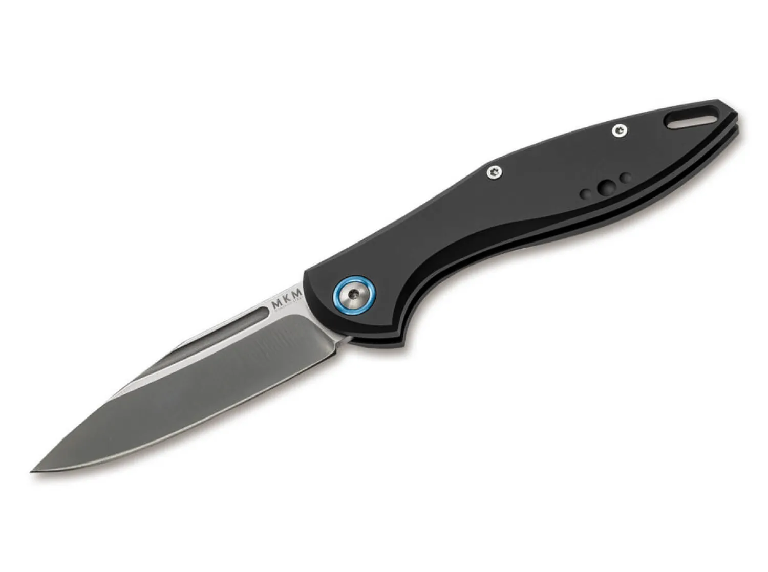 In Zusammenarbeit mit Mercury aus Maniago stellt Lucas Burnley mit dem Slipjoint-Taschenmesser MKM Fara ein zeitgemäßes Taschenmesser vor, das Eleganz,Vielseitigkeit und Nutzwert im Alltag auf beeindruckende Weise verbindet. Der in den Klingenrücken übergehende große Nagelhau und die große Fangriemenöse bestimmen das Design ebenso wie die fließenden Formen des schlank bauenden Griffes, der auf einen Clip verzichtet und durch den blau anodisierten Titanring um die Klingenachsschraube einen besonderen Akzent aufweist. Der schwarz anodisierte Aluminiumgriff verbindet Eleganz mit besonders geringem Gewicht und betont die pulvermetallurgische Klinge aus Böhler M390. Lieferung mit Steck-Etui aus Leder, mit Gürtelschlaufe.