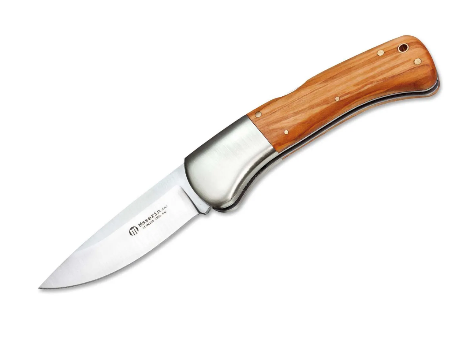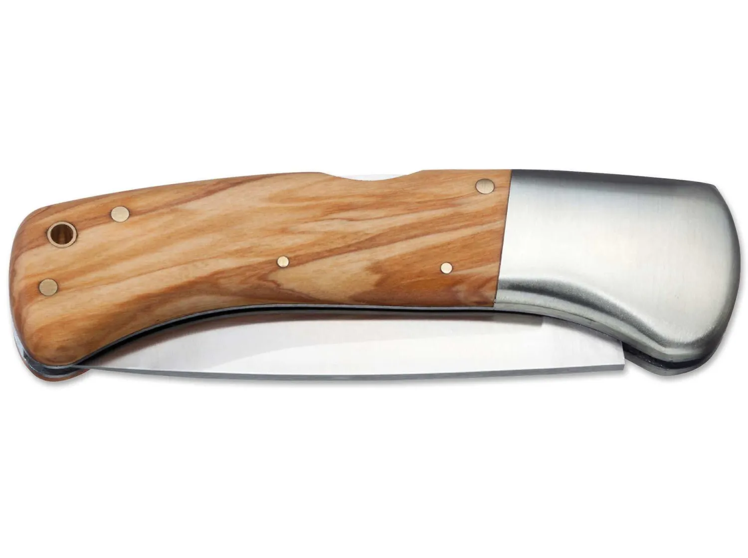 Dieses ausgewachsene Jagd- und Outdoortaschenmesser ist auch für den derberen Einsatz geeignet und bietet mit seinen Neusilberbacken, den sanft gerundeten Olivenholzschalen und der satinierten Klinge aus 440 Eleganz und Nutzwert. Backlock-Verriegelung.