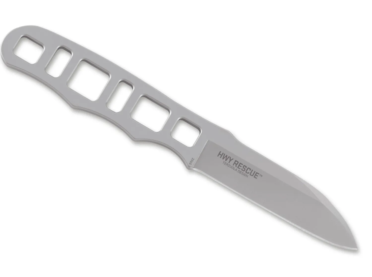 Das HWY Rescue Knife ist ein Ganzstahl-Rettungsmesser, dass von der Messermacher-Legende Bob Terzuola aus Albuquerque, New Mexico entwickelt. Kompakt und leichtgewichtig, ist das HWY das optimale Back-up für Rettungskräfte oder Polizei. Die leicht abgerundete Spitze erlaubt ein schnelles und präzises Arbeiten mit einer verringerten Verletzungsgefahr. Die Klinge wird aus 420J2 gefertigt und ist mit einem Beadblast-Finish versehen. Der skelettierte Griff liegt sicher in der Hand und kann zusätzlich zum Öffnen von Sauerstoffflaschen genutzt werden. Die multifunktionale Zytel-Scheide lässt sich dank der komplett mit einer Klettfläche versehenen Rückseite leicht an Kleidung oder Ausrüstung befestigen und verfügt über einen integrierten Glasbrecher sowie einen Gurtschneider.