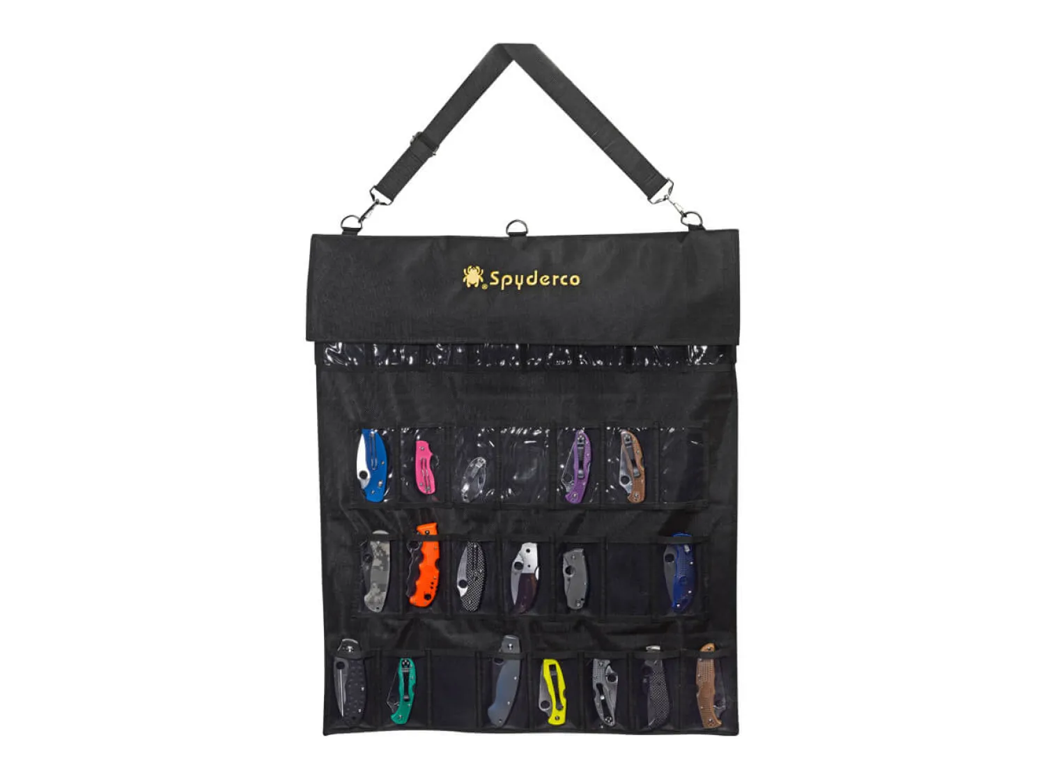 Das große SpyderPac bietet die Möglichkeit, eine Vielzahl von Messern sicher und geschützt zu lagern oder zu transportieren und wird aus reißfestem Cordura gefertigt. Die Tasche besteht aus vier Reihen mit je acht Fächern.Maße geschlossen: 63 cm x 19 cm.