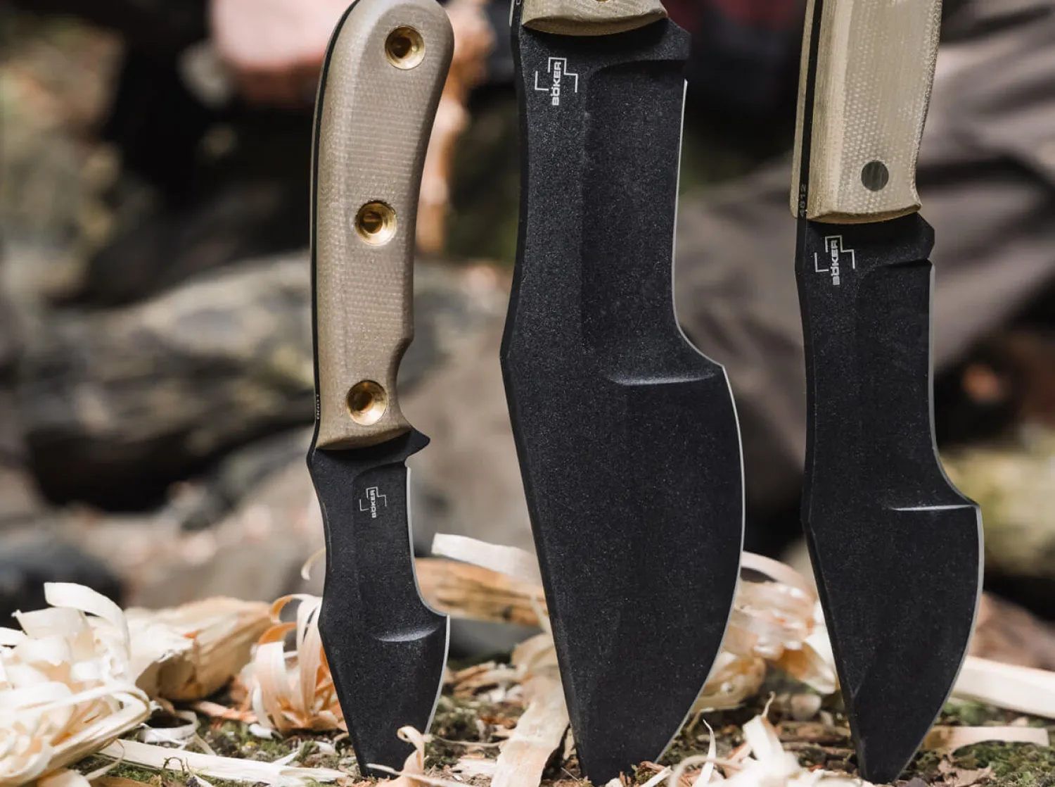 Das charakteristische Design, das Tracker-Konzept mit den zwei voneinander abgesetzten Schliffen, der schocklastunempfindliche Kohlenstoffstahl 1095 und das bemerkenswerte Preis-Leistungs-Verhältnis machten den Böker Plus Mini Tracker von Dave Wenger schnell zu einem Topseller in der Bushcraft- und Outdoor-Szene. Während bei den größeren Varianten des Trackers der vordere Klingenteil vor Allem zum Hacken und Spalten geeignet ist, zeigt die Klingenform mit der kleineren Dimension des neuen Böker Plus Micro Tracker ganz andere Vorzüge und Qualitäten. Die Vorteile der beiden Schliffwinkel auf einer Klinge teilt der Micro Tracker mit seinen großen Brüdern. Darüber hinaus lässt sich im kleineren Format mit der vorderen Klingenhälfte hervorragend auf einem Schneidbrett arbeiten und mit der kräftigen Spitze lassen sich im Alltag ausgezeichnet Kartons öffnen. Die Kleine Nase, die die beiden Schliffe voneinander abgrenzt, zieht sich mit Kraft in den Schnitt in weichen Materialien und ist prädestiniert zum Kappen von Schnüren, Leinen und Gurten. Der Feld- und 3D-Bogenschütze schätzt die kompakten Maße, die kräftige Spitze und die archaische Erscheinung beim Herausarbeiten fehlgeschossener Pfeile. Das Böker Plus Micro Tracker hat dieselben unverwüstlichen Materialien und dasselbe Finish des Mini Tracker. Ein optisches Highlight setzen die drei sorgfältig versenkt und mit Fase versehenen Messinghohlnieten im Griff.