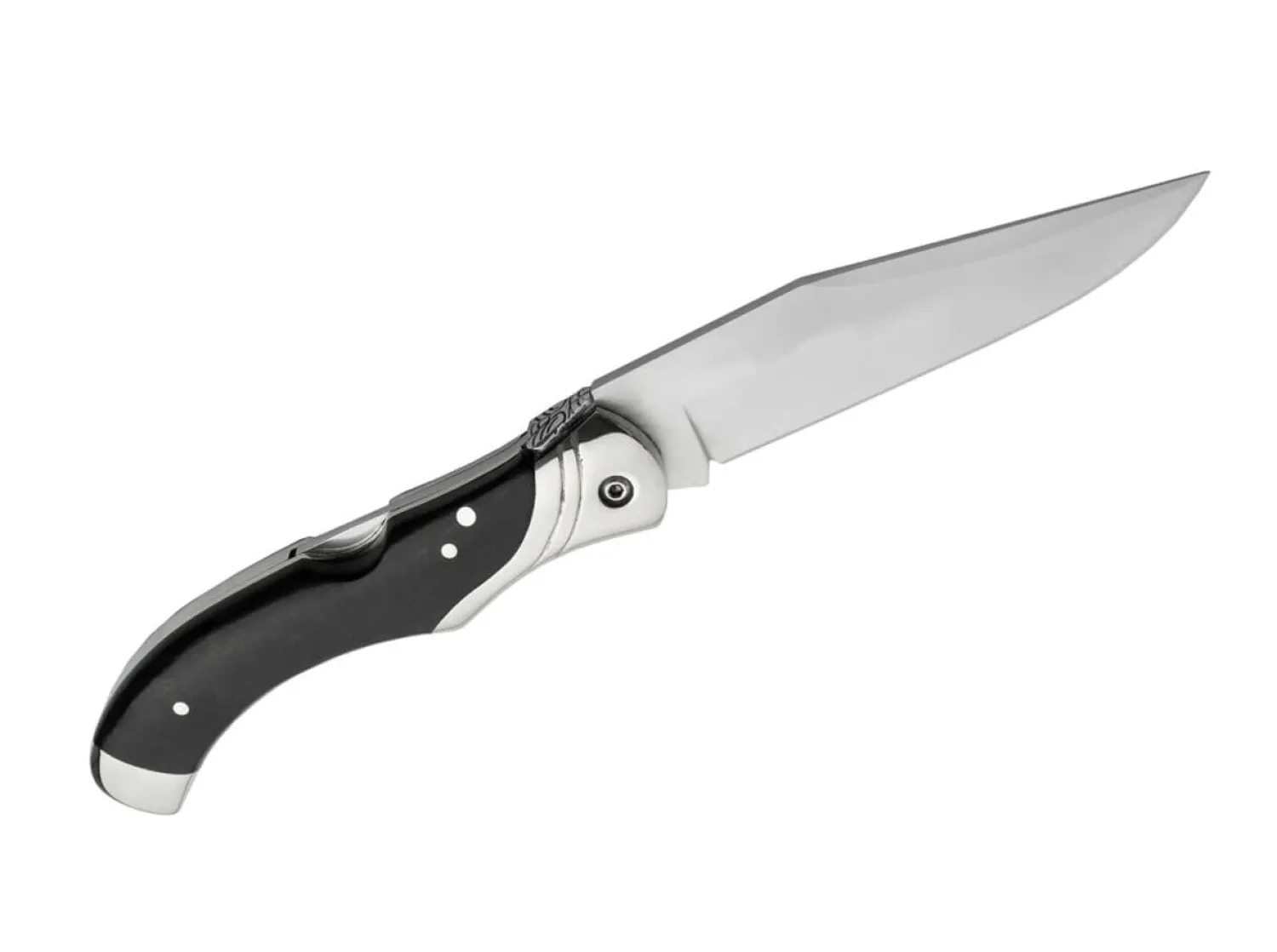 Das Navaja GL von Muela ist ein elegantes Taschenmesser mit stabilem Backlock. Der gesinterte Neusilbergriff ist mit Schalen aus edlem Grenadillholz versehen. Die Klinge wird aus rostfreiem 4116 gefertigt.