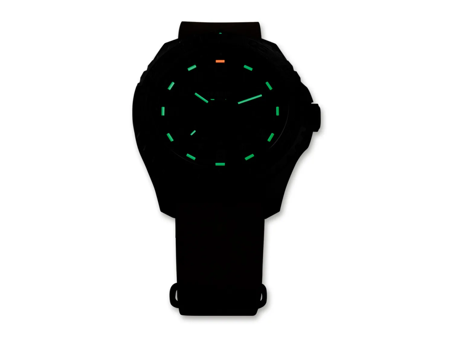 Die Traser P96 OdP Evolution ist der ideale Zeitmesser für Entdecker und Outdoor-Enthusiasten, der bei keinem Abenteuer fehlen darf. Extrem leicht, zäh und robust – diese Eigenschaften charakterisieren die sportliche P96 Outdoor Pioneer am besten. Zusätzliche Robustheit verleiht der P96 ein widerstandsfähiges glasfaserverstärktes Polymer-Gehäuse. Die Ablesbarkeit bei Nacht ist durch die hauseigene Selbstleuchttechnologie trigalight jederzeit gewährleistet.Die Uhr hat einen Durchmesser von 44 Millimetern und ist mit anti-reflektierendem, kratzfestem Saphirglas und einem Original Swiss Made Quarz Uhrwerk ausgestattet. Die grünen Ziffern und Uhrzeiger sitzen auf einem petrolfarbenen Ziffernblatt. Das hochwertige Leder-Armband ist angenehm zu tragen. Die Uhr verfügt über eine Stoppfunktion und ist wasserdicht bis 20 bar oder 200 Meter. Die trigalight Selbstleuchttechnologie erleuchtet Index 1 bis 11 in grüner Farbe und Index 12 in orangener Farbe. Zusätzlich ist die einseitig drehbare Lünette mit Super-LumiNova beschichtet.