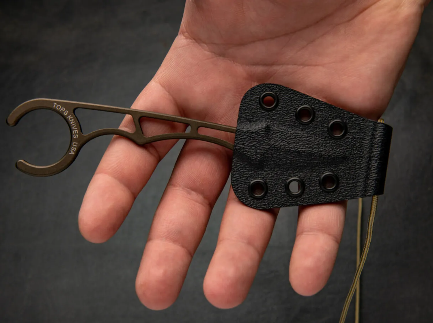 Achtung!Dieser Artikel ist ausschließlich für den Export in zugelassene Märkte bestimmt. Es handelt sich um einen verbotenen Gegenstand gemäß deutschem Waffengesetz. Der Vertrieb in und die Einfuhr nach Deutschland sowie jeglicher Umgang mit diesem Produkt in Deutschland ist verboten. Die Abgabe erfolgt nur an berechtigte Personen, jede Bestellung wird manuell geprüft! Bestellungen aus nicht zugelassenen Märkten werden ohne Rückmeldung gelöscht. Aufgrund der besonderen Rechtslage müssen wir diesen Artikel getrennt von anderen Artikeln versenden, wodurch höhere Portokosten entstehen können. Das TOPS Papa Delta wurde von Leo Espinoza in Zusammenarbeit mit einem pensionierten Polizei- und Geheimdienstmitarbeiter entwickelt. Als taktisches Neck Knife kommt es vor allem auf eine diskrete Trageweise an. Aus diesem Grund ist es dünn, skelettiert und in jeder Hinsicht unauffällig. Das „unvollständige“ Fingerloch ist absichtlich nicht verschlossen, damit das Messer leichter losgelassen werden kann als bei einem normalen Karambit mit geschlossenem Ring. Die beidseitig abgezogene Klinge aus 1095 ist von einem Bronze Cerakote-Finish überzogen und verleiht dem feststehenden Messer eine besondere Anmutung. Dank der mitgelieferten Kydex Scheide lässt sich das Papa Delta ideal um den Hals tragen.