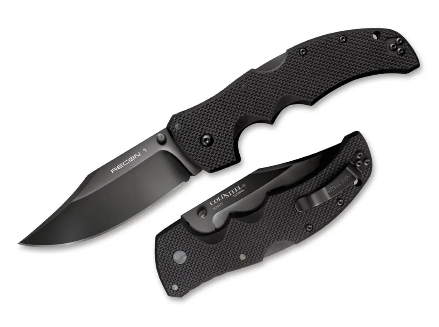 In den USA erfreuen sich die Messer der Recon 1-Serie bereits großer Beliebtheit bei Militär, Polizei, Rettungskräften und seit jüngerer Zeit auch vermehrt bei der Zivilbevölkerung. In der Welt der taktischen Messer setzen sie neue Maßstäbe und haben sich ihren zuverlässigen und starken Ruf zu Recht verdient. Die Recon 1-Messer sind in verschiedenen Klingenlängen erhältlich. Bei der Konzeption wurde jedes ihrer Bestandteile auf Langlebigkeit und Leistungsfähigkeit hin entwickelt. Alle Modelle dieser facettenreichen Kollektion sind mit Cold Steels weltweit bekanntem Tri-Ad-Verriegelungsmechanismus ausgerüstet, der selbst unter widrigsten Bedingungen optimalen Schutz bietet. Das komplett schwarze Recon 1 verfügt über eine Clippoint-Klinge aus pulvermetallurgischem CPM-S-35VN, Daumenpin sowie einen strukturierten Griff aus G10 mit umsetzbarem Taschenclip (Tip-Up) und Fangriemenöse.