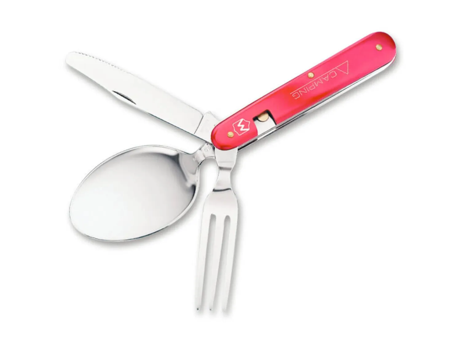Mercury aus Maniago ist hauptsächlich bekannt für seine klassischen Taschenmesser mit Hirschhornbeschalung. Mit einem farbenfrohen Konzept präsentiert der italienische Hersteller das praktische Campingbesteck Rover mit den wesentlichen Hauptbestandteilen Messer, Gabel und Löffel. Verwendet wird der bewährte 420 Stahl, während der erfrischend rote Griff aus Aluminium besteht.