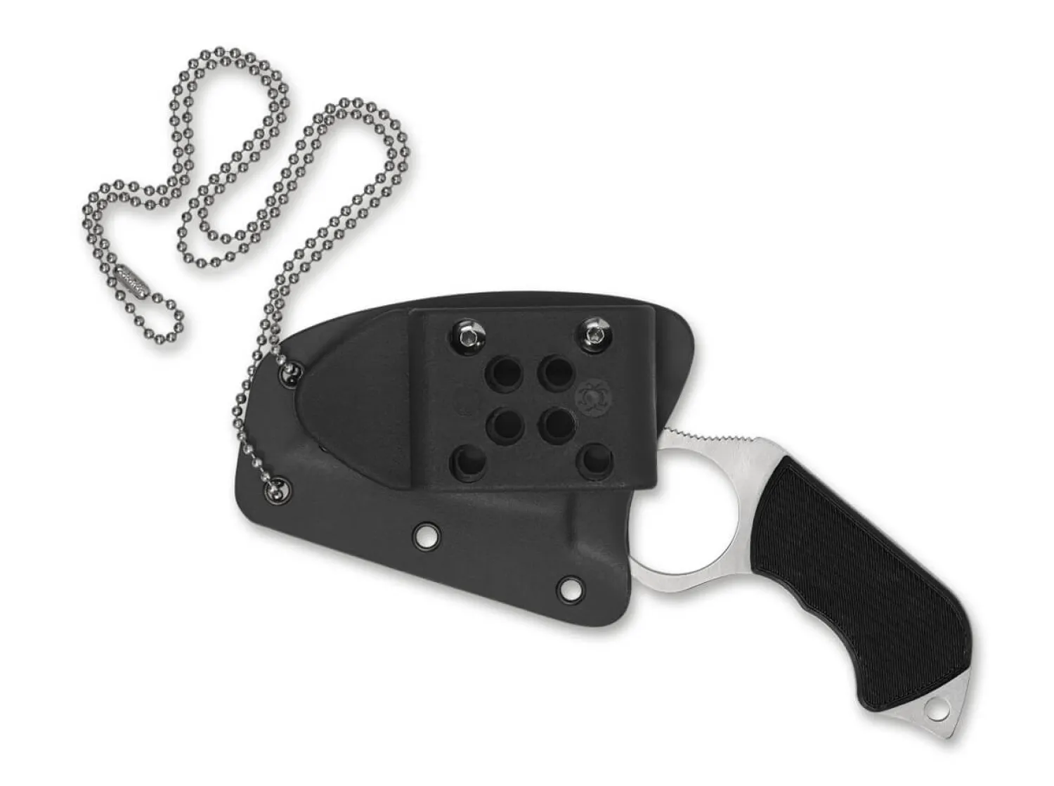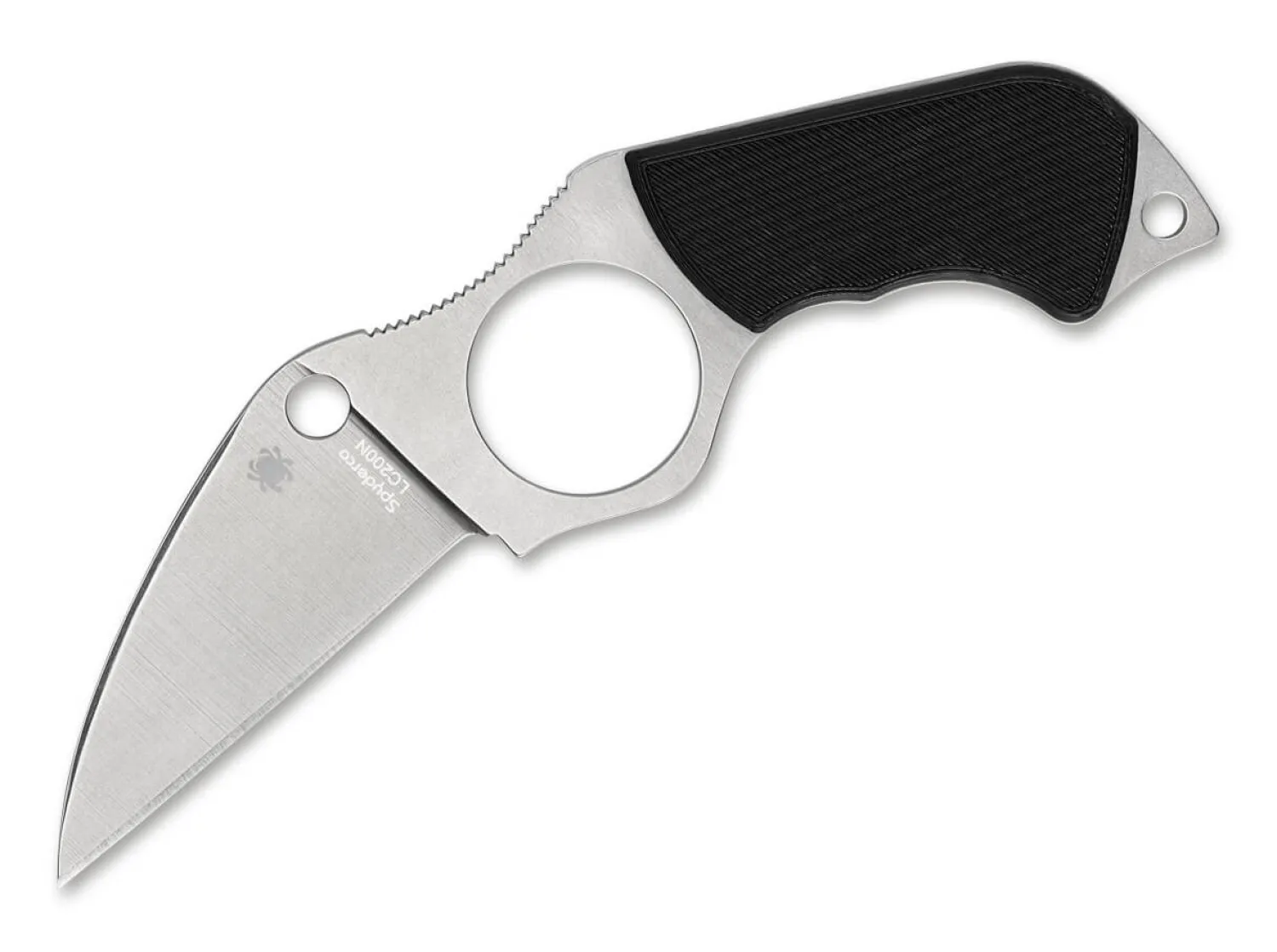 Das Swick 5 stammt aus der Feder von Spyderco Gründer Sal Glesser, welcher die bahnbrechenden Innovationen des französischen Messermachers Fred Perrin für dieses feststehende Messer aufgriff. Das Messer wurde speziell für die Selbstverteidigung konzipiert und verfügt über ein großes Loch für den Zeigefinger, womit eine noch sicherere Handhabung erfolgt. Die Wharncliffe-Klinge besteht aus LC-200N und läuft in den pistolenartigen Griff aus G10 formschön über. Mit Boltaron-Scheide und Fangriemenöse.