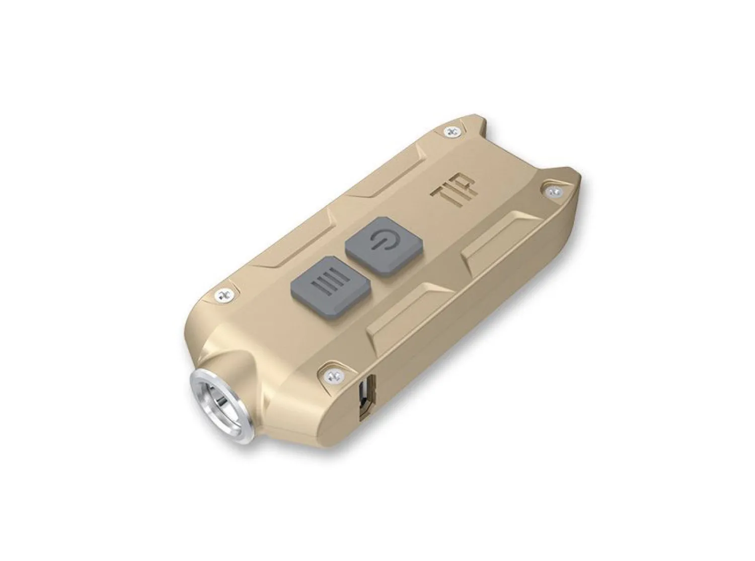 Die neue Version der TIP CRI Schlüsselbundlampe von Nitecore ist ausgestattet mit einer Nichia 2198-LED in „Natural White“ mit bis zu 240 Lumen Leuchtkraft und bietet zusätzlich zu den bewährten Eigenschaften einen abnehmbarem Clip, der auch zum Sichern/Abdecken der Schalter verwendet werden kann. Zudem ist die Programmierung einer automatischen Abschaltfunktion möglich. Spritzwassergeschütztes Aluminiumgehäuse mit integriertem Li-Ionen-Akku und USB-Ladefunktion. 2 Schalter mit integrierten Status-LEDs für Direktzugriff auf Turbo, Minimum oder die zuletzt benutzte Lichtstärke. Mit 4 Leuchtstufen (240/95/22/1 Lumen) und ATR-Temperaturregelung. Lieferung mit Schlüsselring und Clip. Größe 61 x 24 x 14 mm. Gew. 21 g.