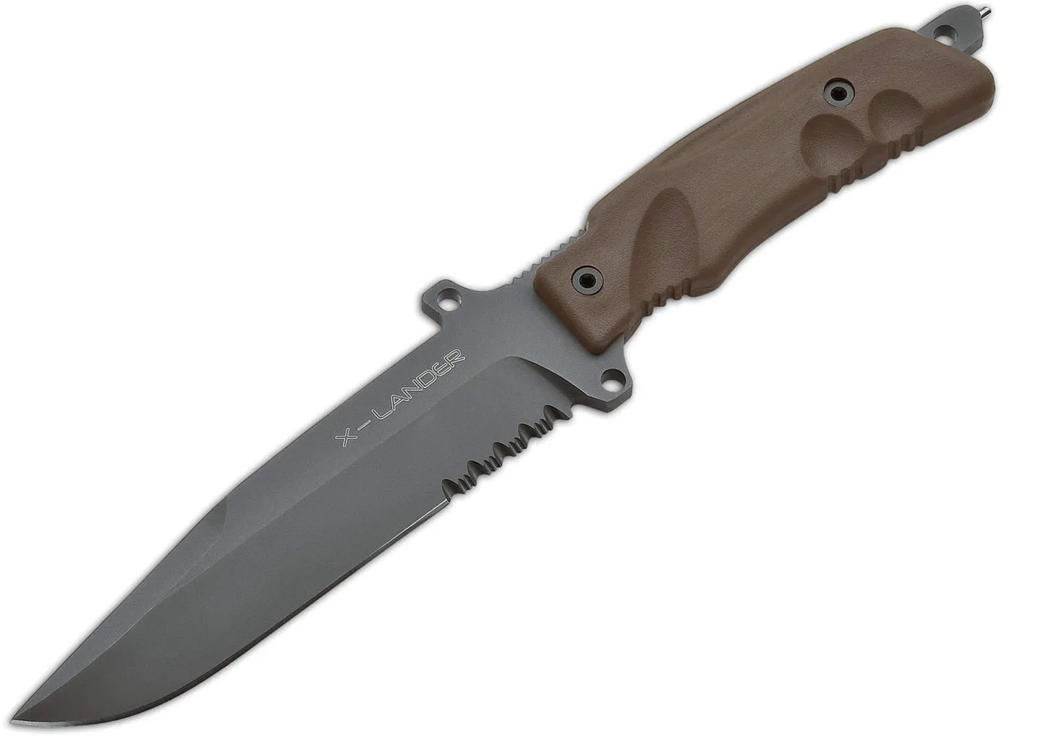 Für spezielle Einsätze und Anforderungen haben wir mit dem FKMD X-Lander jetzt das richtige Messer. Absolute Korrosionsfreiheit sowie 100% antimagnetische Eigenschaften verdankt das X-Lander seiner Klinge aus Beta-Titan. Die Griffschalen aus Forprene fassen sich auch bei Nässe oder Kälte sicher und angenehm und erlauben ausgiebiges Arbeiten ohne Ermüdung. Eine multifunktionale Cordurascheide (MOLLE-kompatibel) mit Beinriemen, Durchstichschutz und Vortasche erlaubt unterschiedliche Trageweisen. Glasbrecher im Griffende.