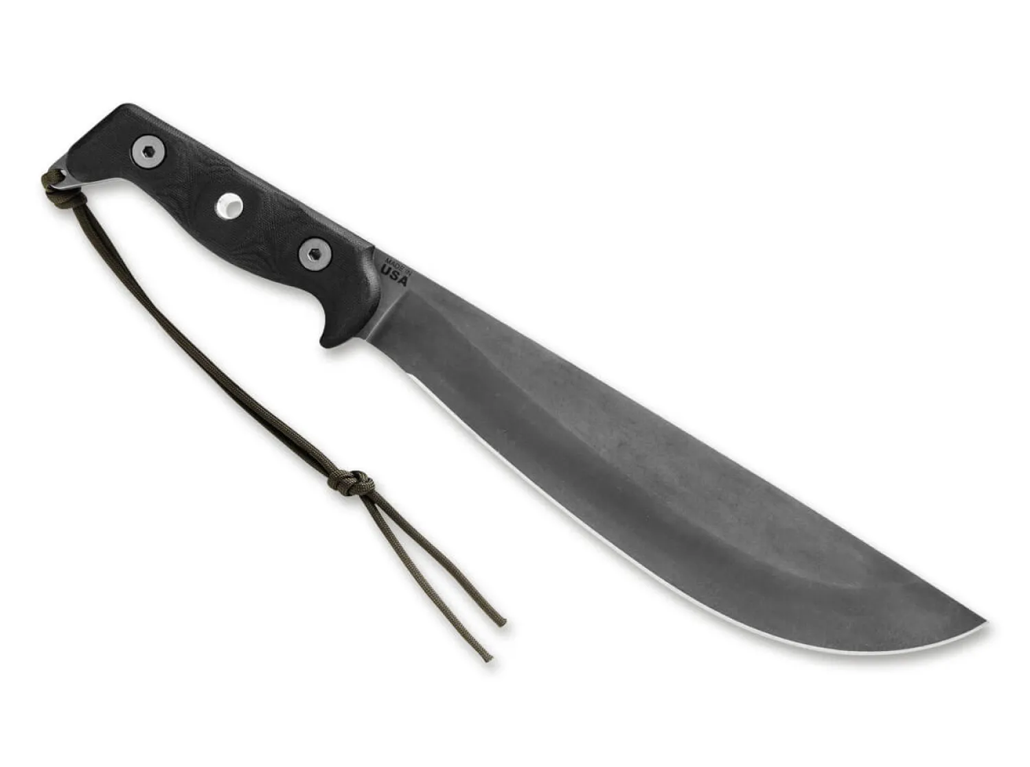 Das beeindruckende TOPS Yacare vollzieht den Brückenschlag zwischen einem ausgewachsenen Outdoormesser und einer kurzen Machete. Es ist mit einer Klinge aus 1095 Kohlenstoffstahl ausgestattet, die mit einem robusten Acid-Wash-Finish versehen ist. Die Griffschalen bestehen aus schwarzem Micarta und liegen dank ihrer ergonomischen Formgebung angenehm in der Hand. Mit Fangriemen und praktischer Nylonscheide.